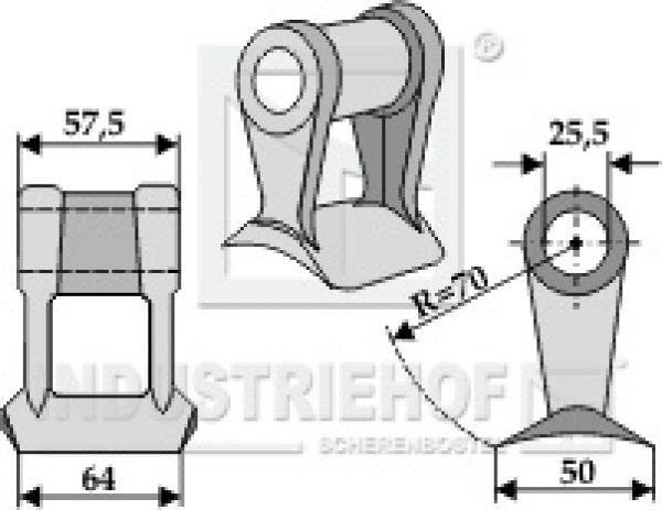 Hammerschlegel 63-RM-14 passend für Mulag Mulcher Technische Datem: Best.-Nr. 63-RM-14 Gewicht 0,507 kg Bohrung 25.5 mm Breite oben 57.5mm Breite unten 64 mm Messerbreite 50mm Radius R=70 Artikel passend für Fabrikat: Mulag: TM60-07-0223 Noremat: 1.39.207 Rousseau: 5.254.03 5.524.45 S.A.M.: 1001471