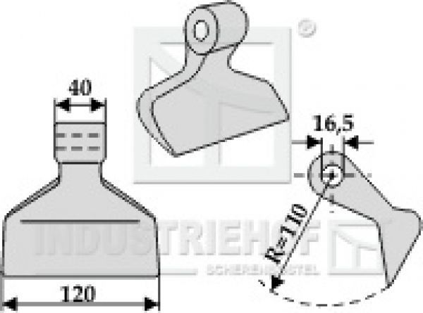Hammerschlegel 63-RM-4 passend für Kverneland, Maletti Mulcher Technische Datem: Best.-Nr. 63-RM-4 Gewicht 1,36 kg Bohrung 16.5 mm Einbaumaß 40mm Messerbreite 120mm Radius R=110 Artikel passend für Fabrikat: Kverneland, Agricom, Becchio & Mandrile, Desvoys, Kuhn, Maletti, M.E.A.A.T., Nobili, OMA