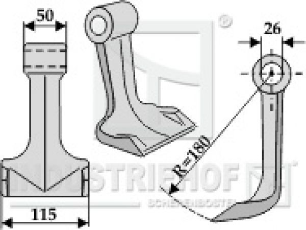 Hammerschlegel 63-RM-46 passend für Becchio & Mandrile, Kuhn, Nobili Mulcher Technische Datem: Best.-Nr. 63-RM-46 Gewicht 1,44 kg Bohrung 26. mm Breite oben 50mm Messerbreite 115 mm Radius R=180 Artikel passend für Fabrikat: Kuhn: 6061699 Becchio & Mandrile: CL280 Obenstehende Original Ersat