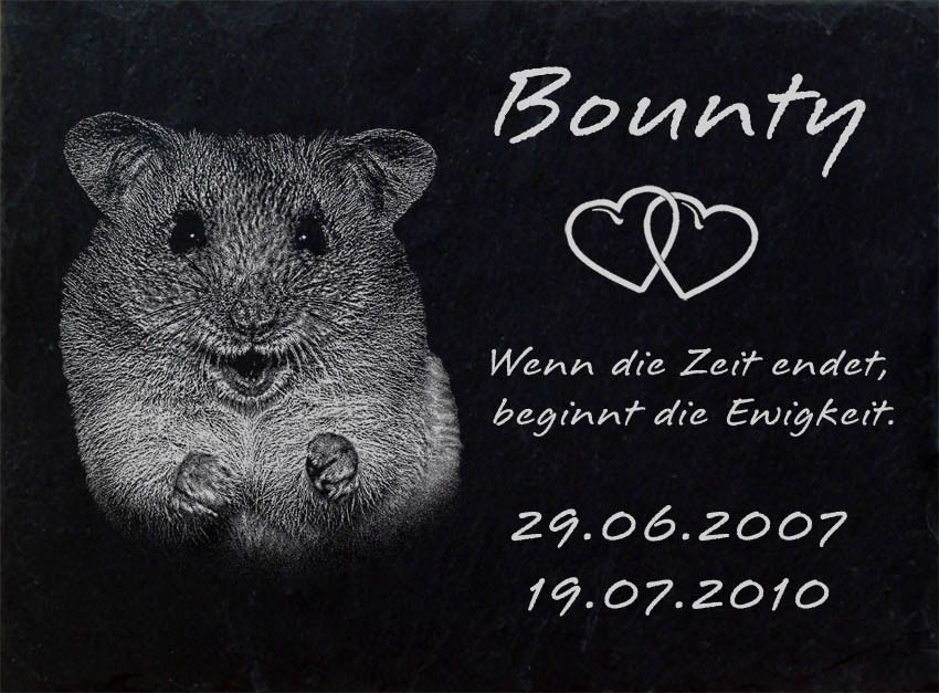 Hamster Gedenkstein Grabstein Tiergrabstein Hamster-002 -Fotogravur- 35 x 25 cm