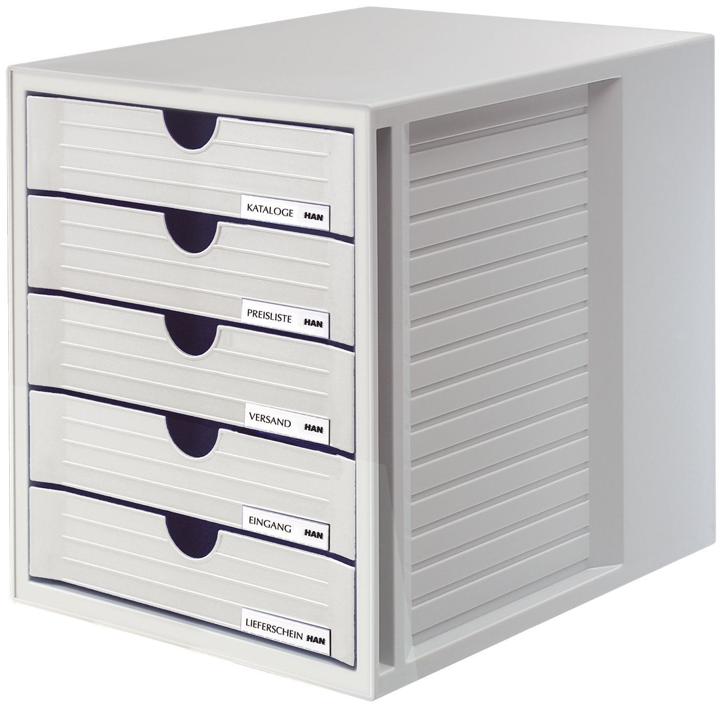 HAN HAN 1450-11 Schubladenbox Systembox - A4/C4, 5 geschlossene Schubladen, lichtgrau