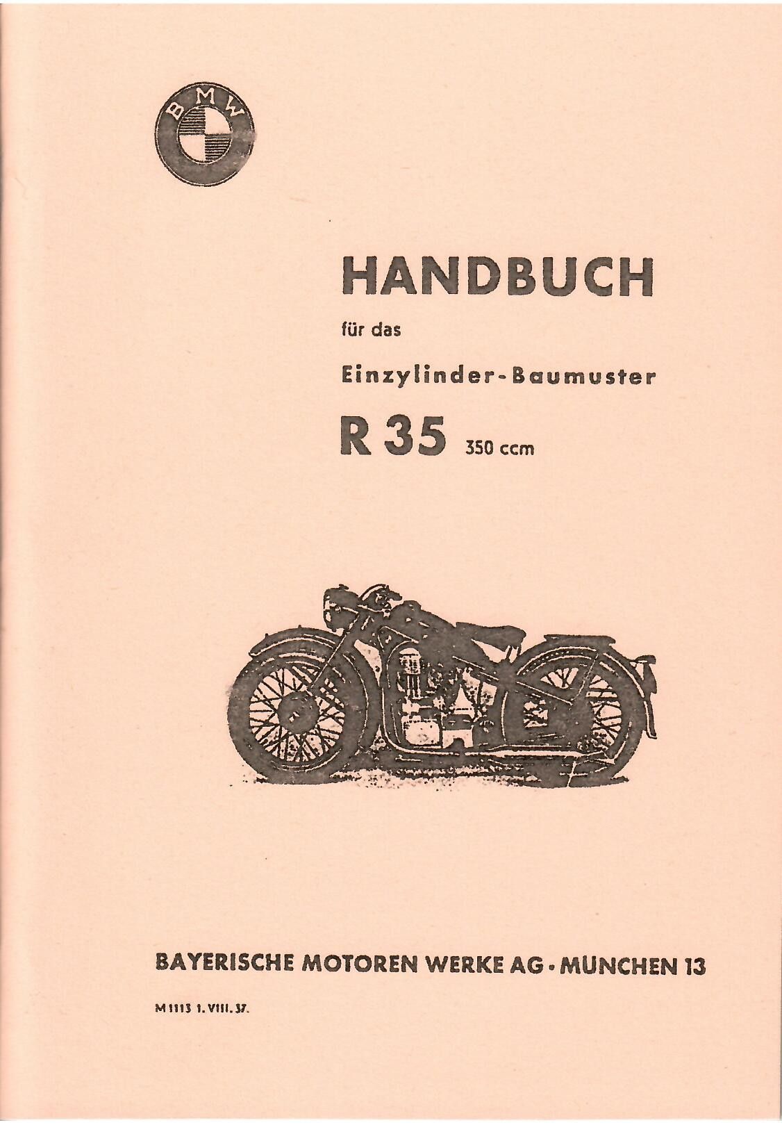 BMW Handbuch BMW Einzylinder Baumuster R 35 350 ccm 14 PS Motorrad Oldtimer