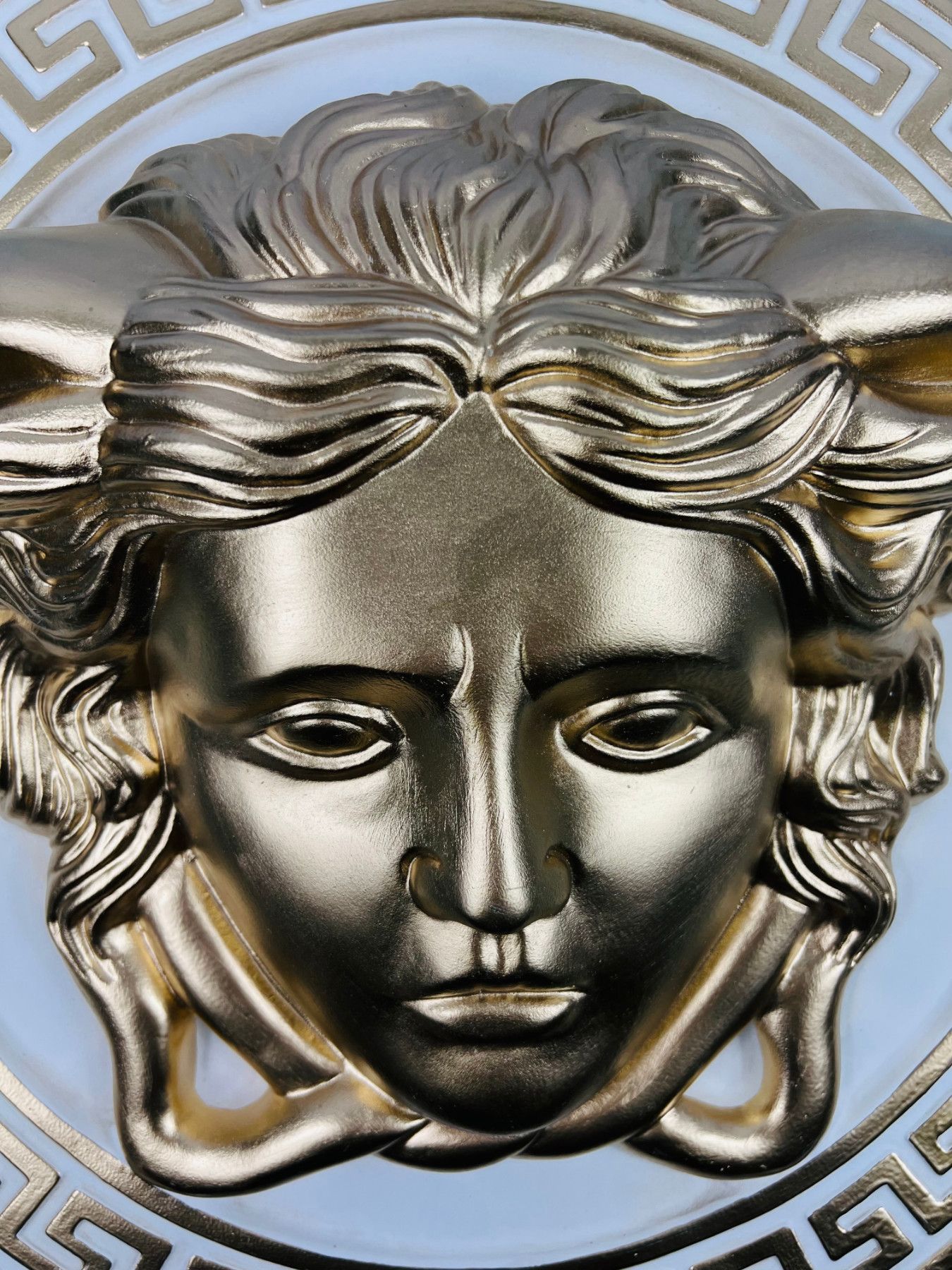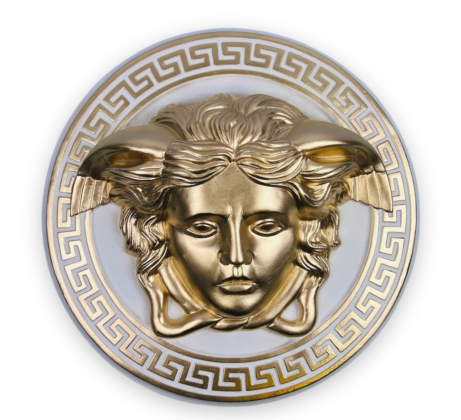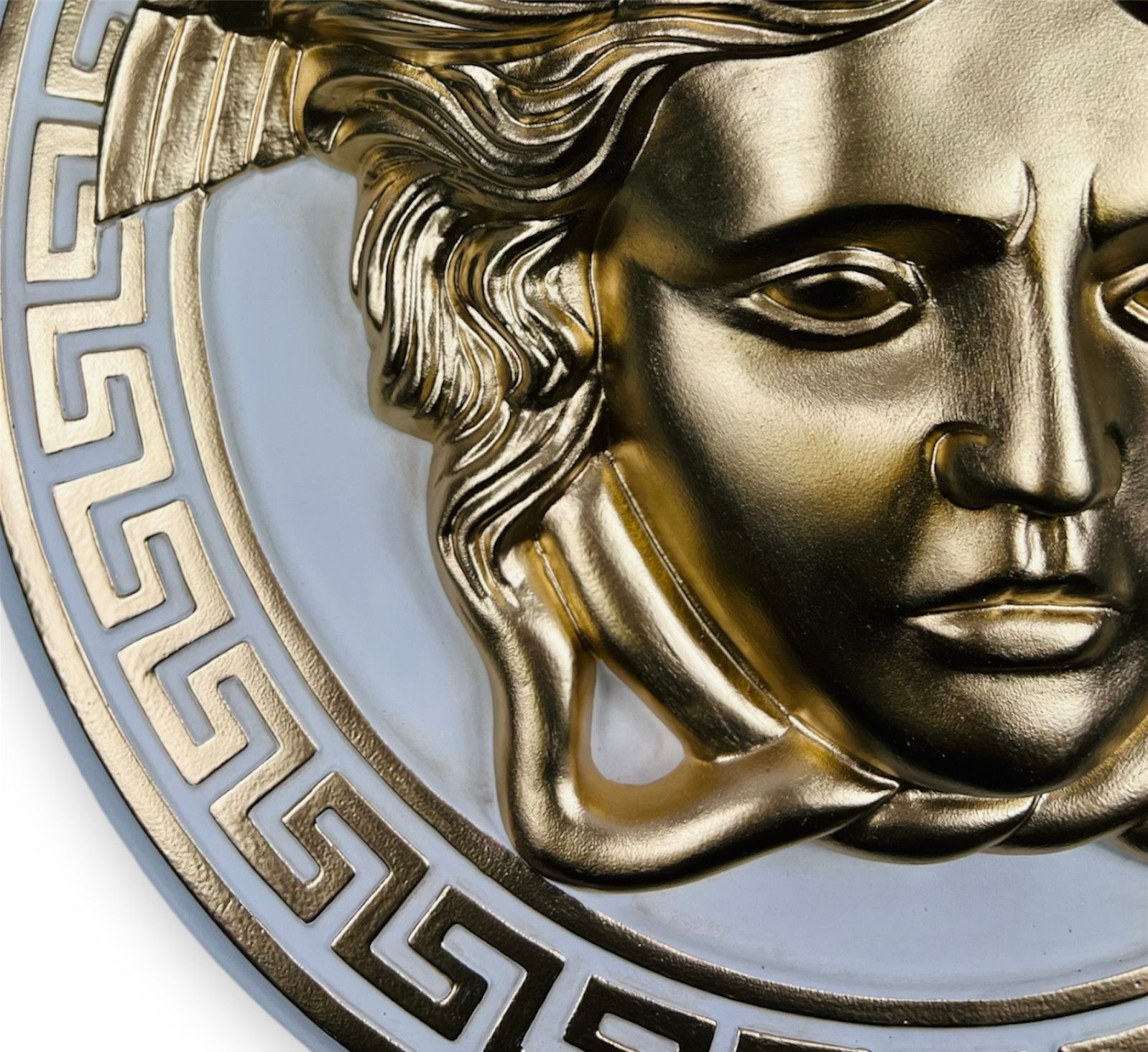Handgefertgtes Wandrelief Kopf der Medusa 50cm Grieschische Antik Gold-Weiß NEU