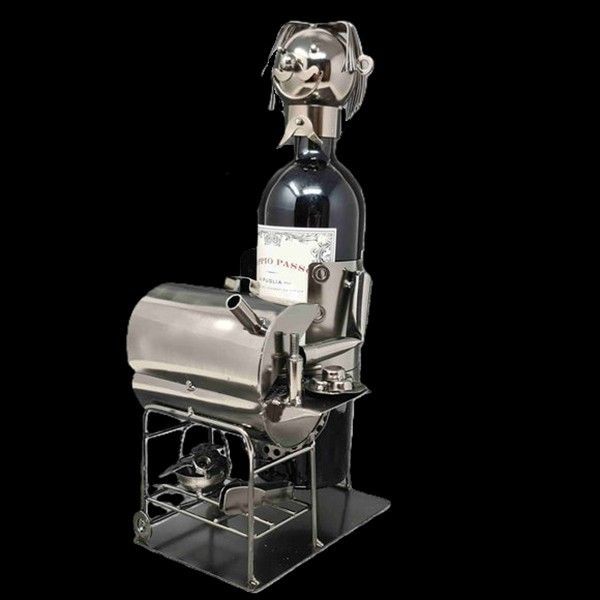 Handgefertigter Flaschenhalter Metallfigur BBQ Griller