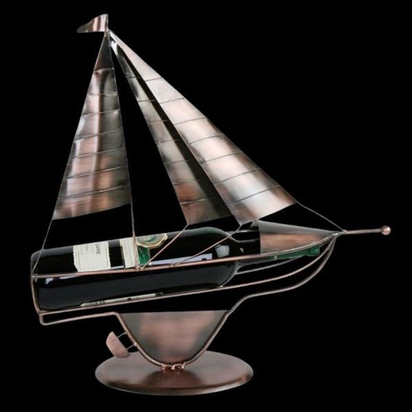 Handgefertigter Flaschenhalter Metallfigur Segelboot