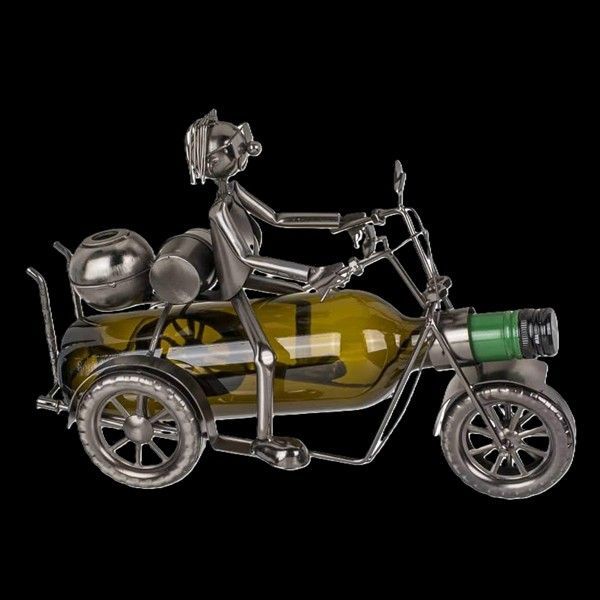 Der handgefertigte Metall-Flaschenhalter in Form eines Trikes mit Fahrer ist ein außergewöhnliches Highlight für Motorradfans und Weinliebhaber. Mit einer Höhe von ca. 25 cm begeistert er durch detailreiche Verarbeitung und kreatives Design. Die Flasche wird stilvoll in das Trike integriert, was diesen Flaschenhalter zu einem originellen Blickfang und einer perfekten Geschenkidee macht! Flasche nicht im Lieferumfang enthalten.