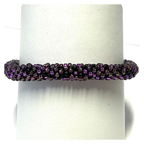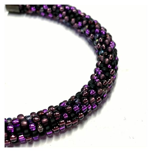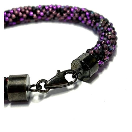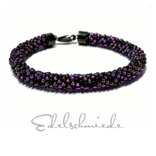 handgefertigtes Häkelarmband aus Glasperlen - Farbmix schwarz lila - mit 925/- Sterli