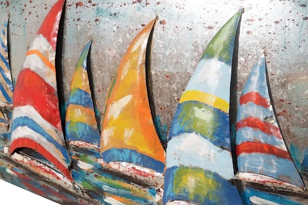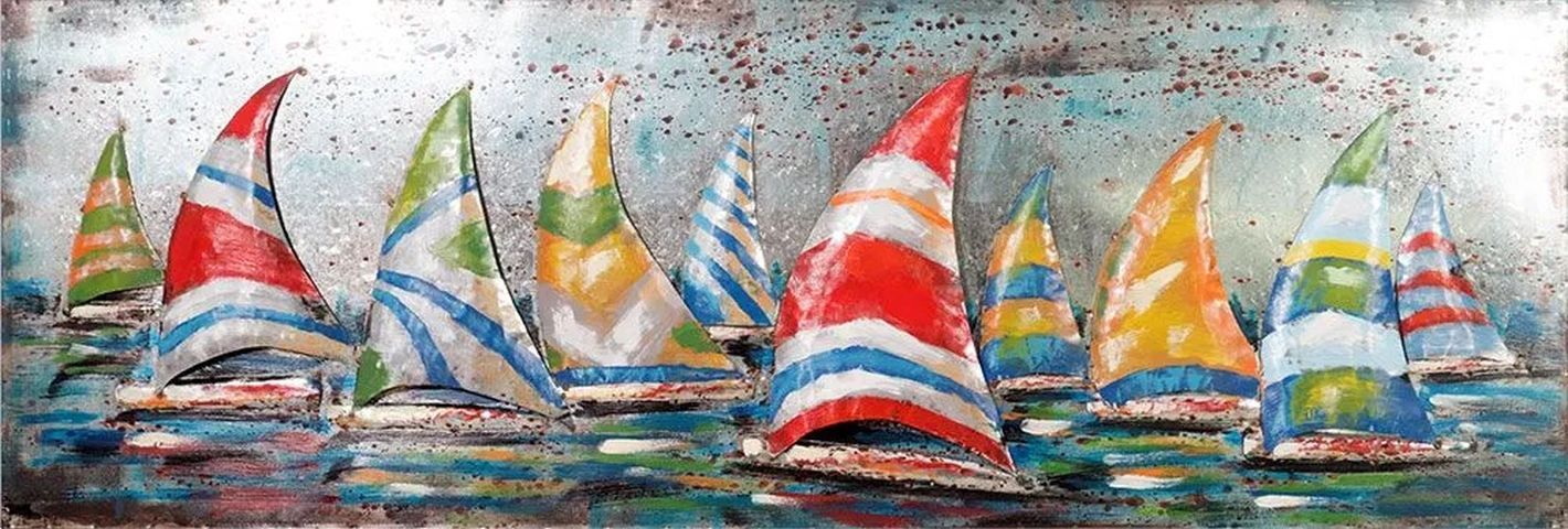 Handgefertigtes Metallbild bunte Segelboote ca 180x60 cm