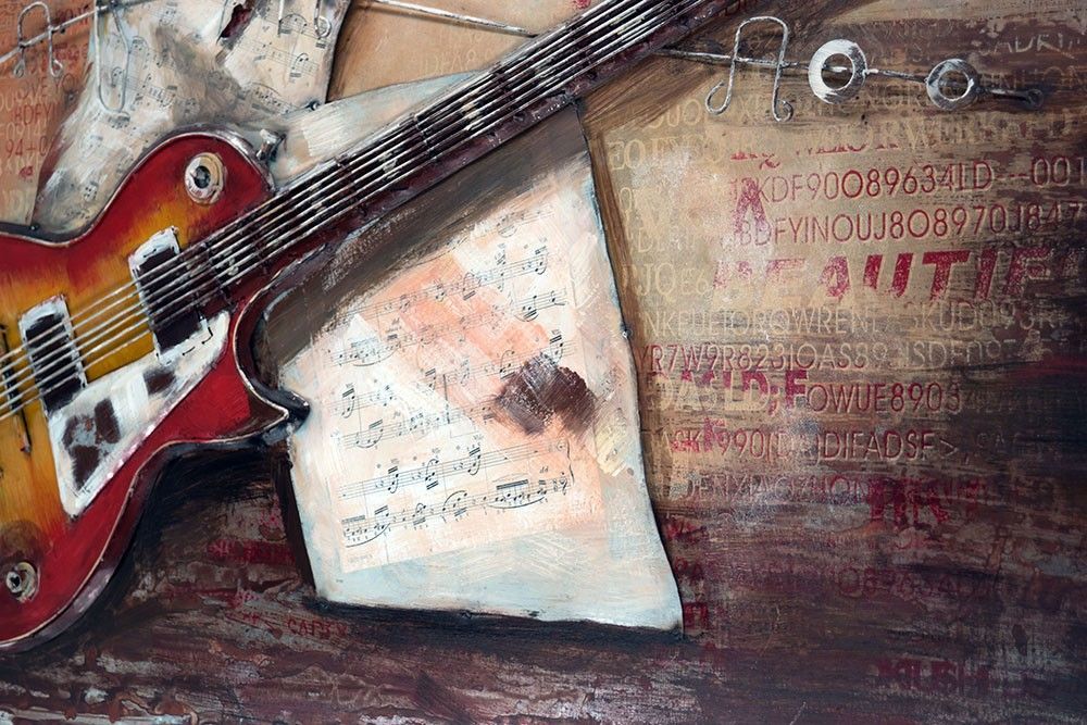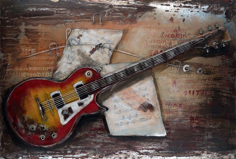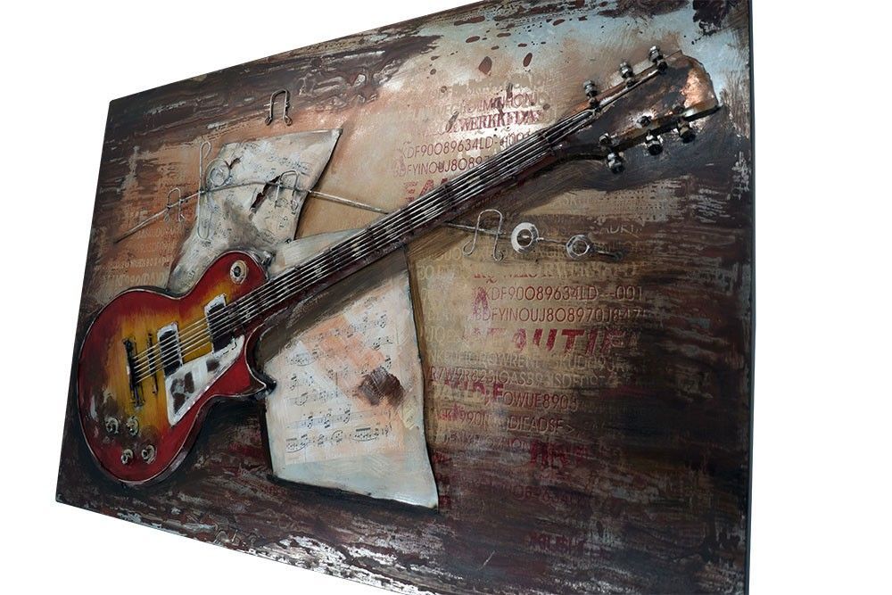 Handgefertigtes Metallbild E-Gitarre ca. 120x80 Kunst Bild 3D-Optik Wandbild