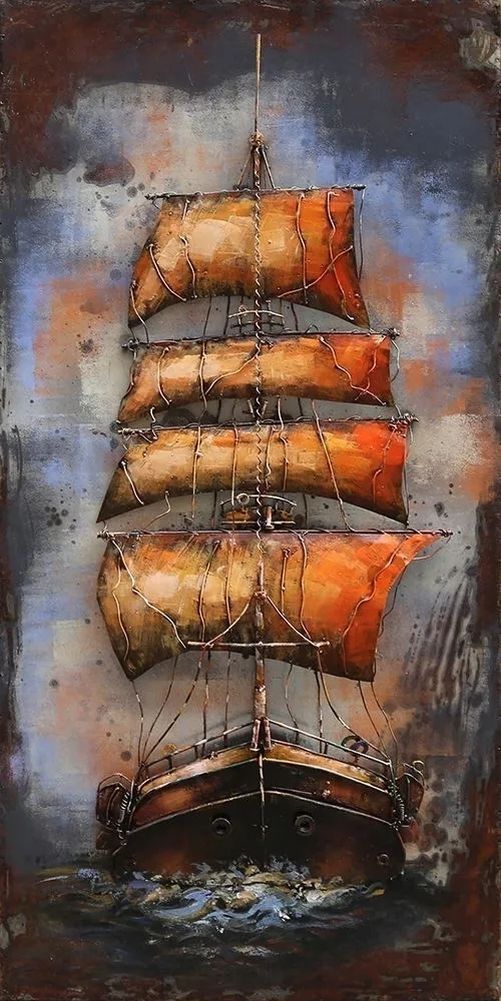 Handgefertigtes Metallbild Sailing ca 70x140 cm