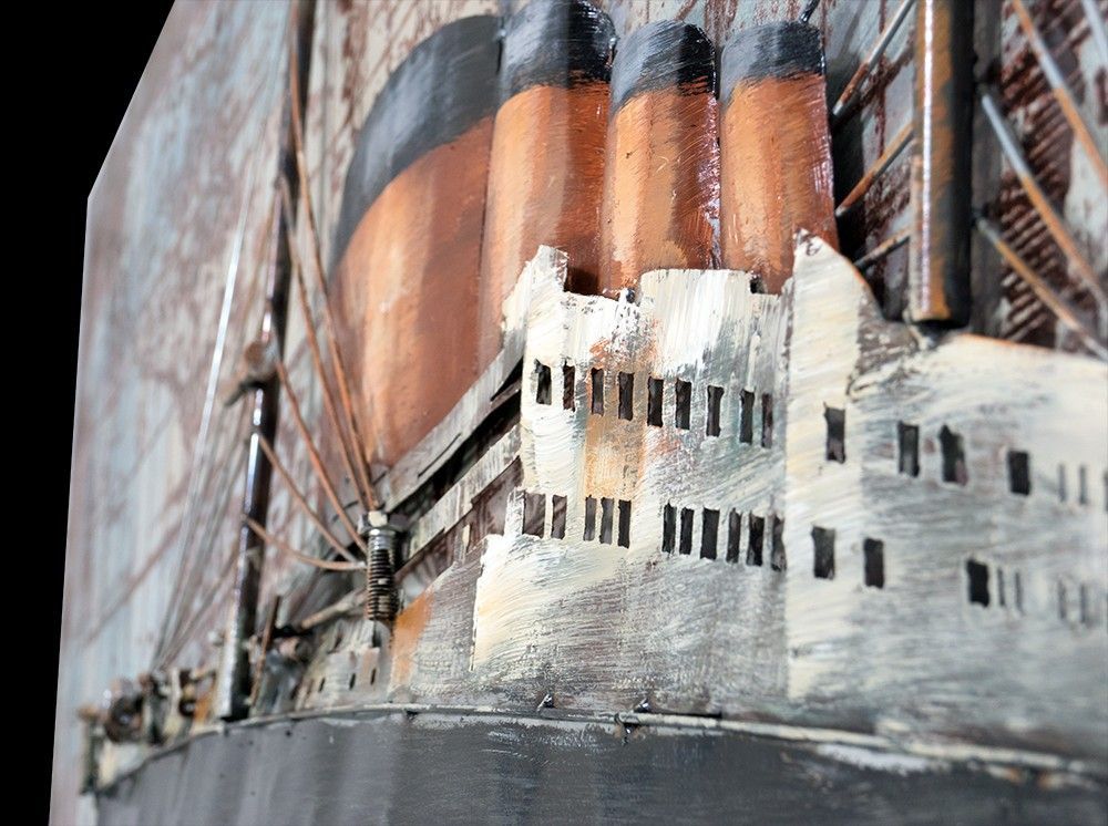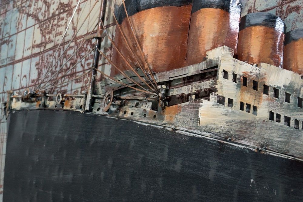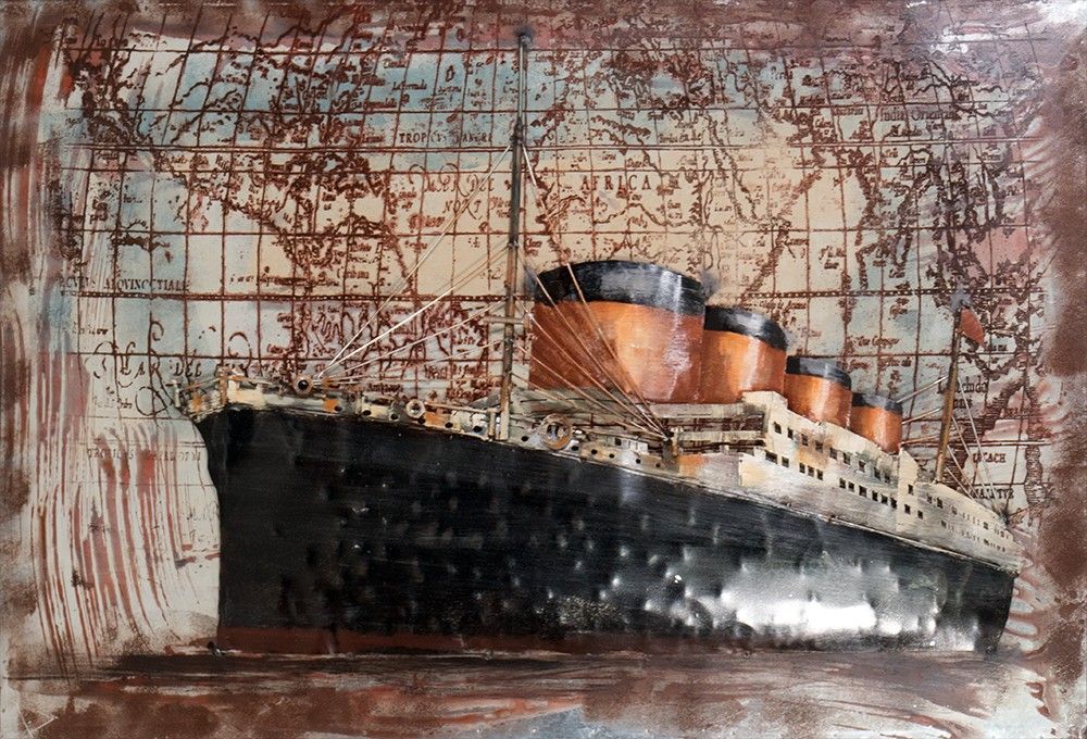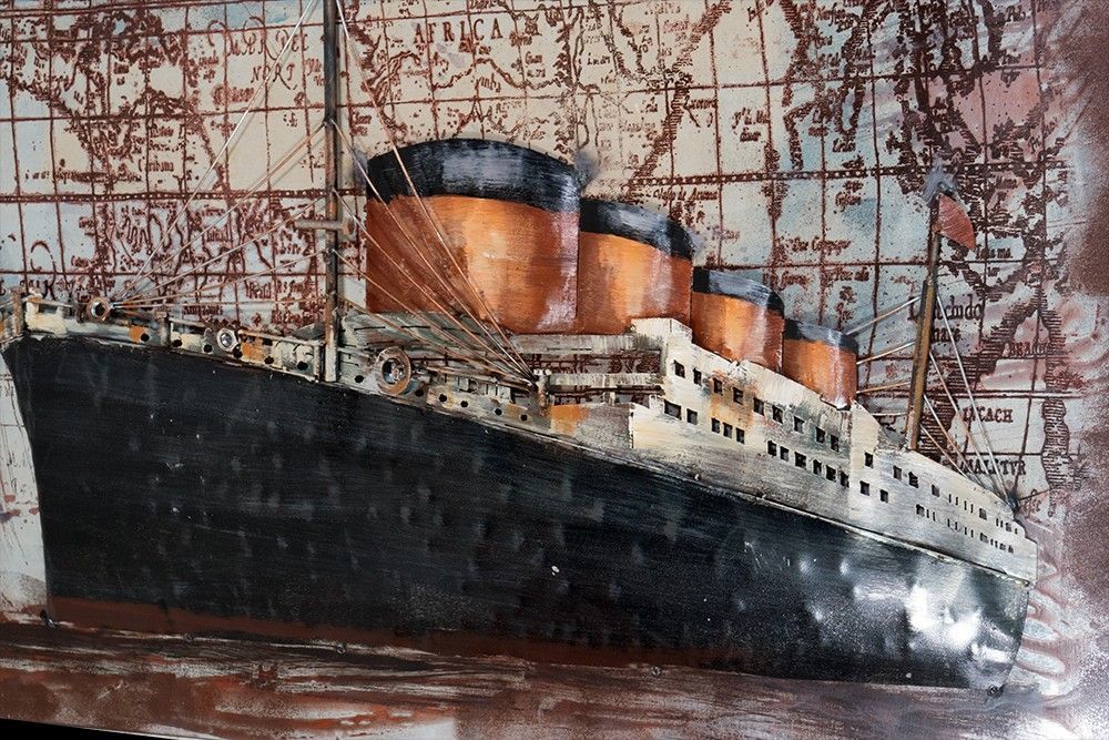 Handgefertigtes Metallbild Vessel Black/ Gold 120x80 cm Kunst Bild 3D-Optik Wandbild