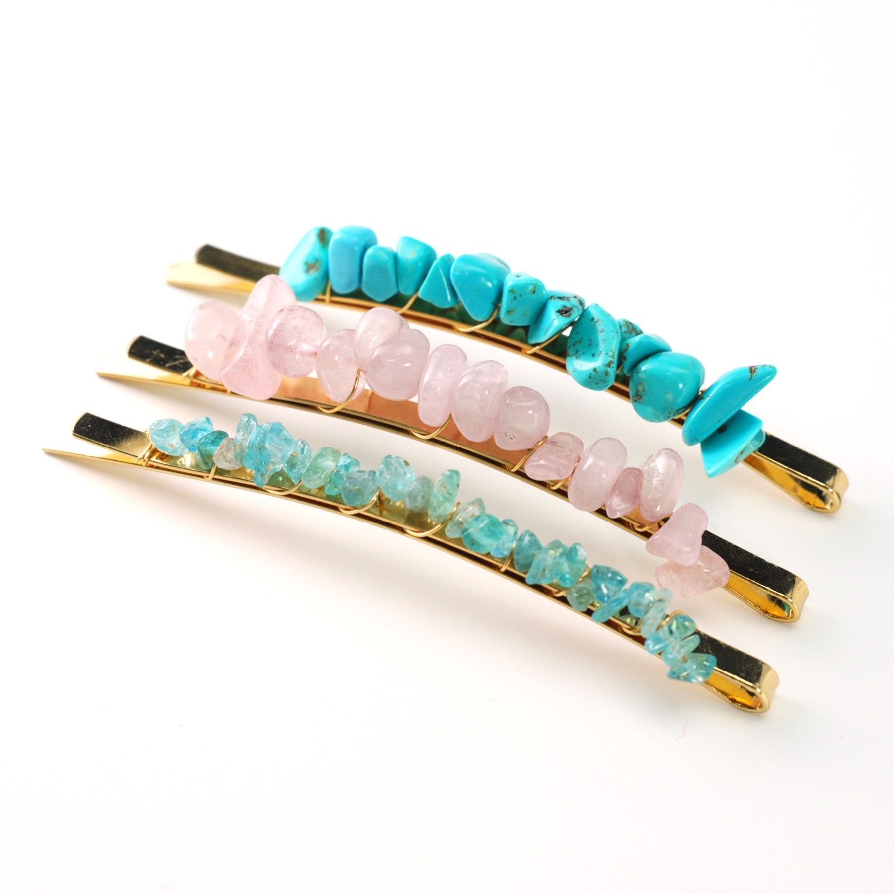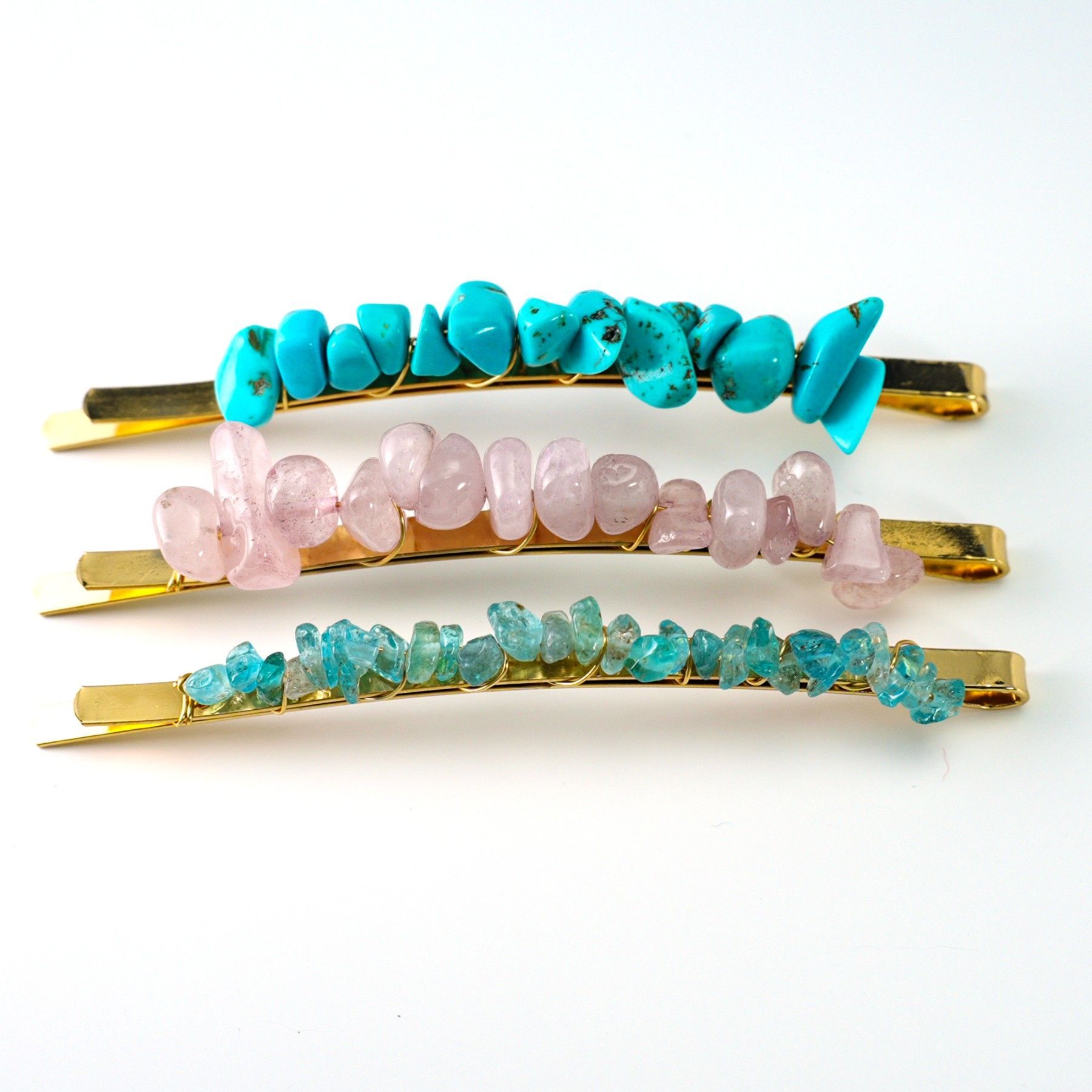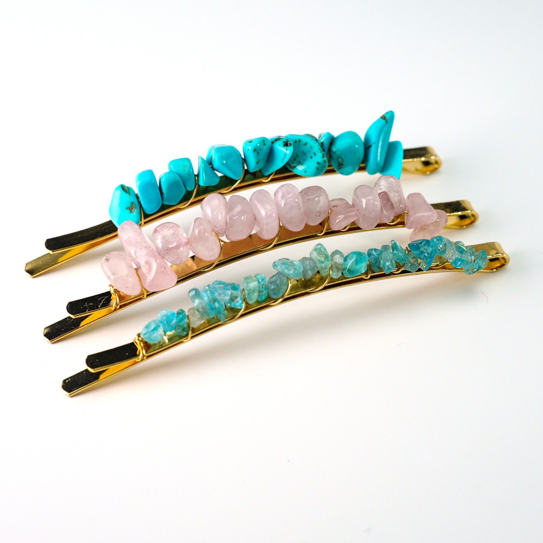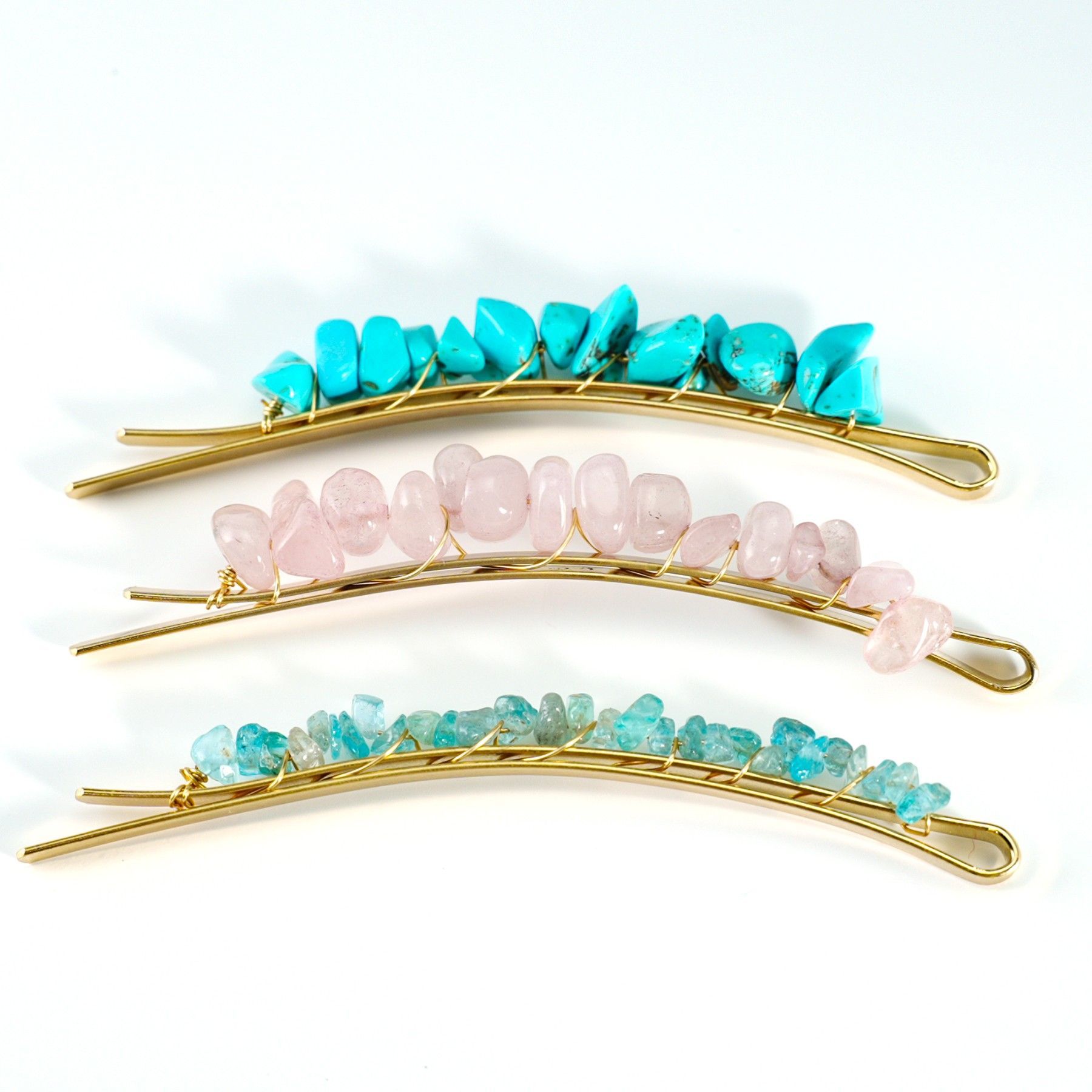 Handgemachte Naturstein Haarspangen - Apatit, Rosenquarz, Türkis Stil Geschenk