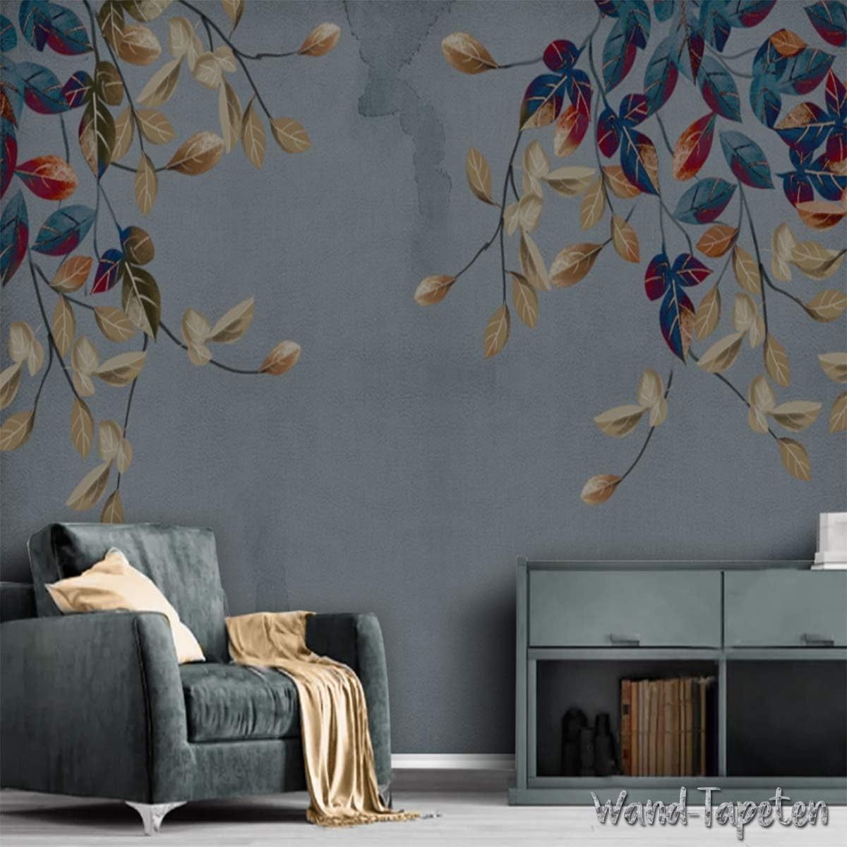 • Vlies Fototapete Wandtapete Wandbilder Handgemalte Blätter Abstrakte Retro 3371