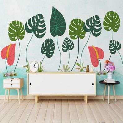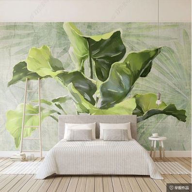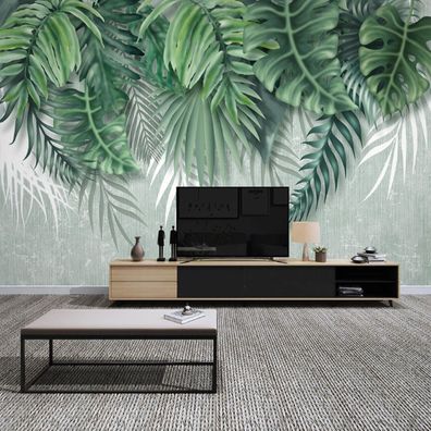 • Handgemalte Tropische Pflanzen Blätter Wandtapete Modern Minimal Vlies 10306