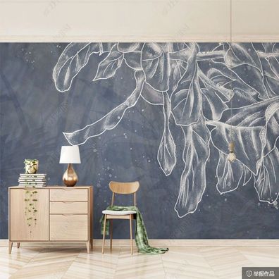 • Vlies Fototapete Wandtapete Wandbilder Moderne Einfache Handgemalte Blätter 5048