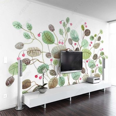 • Vlies Fototapete Wandtapete Wandbilder Handgemaltes Aquarellbild Blättern 4269