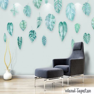 • Vlies Fototapete Wandtapete Wandbilder Handgemalte Blätter Frische Grüne 11239