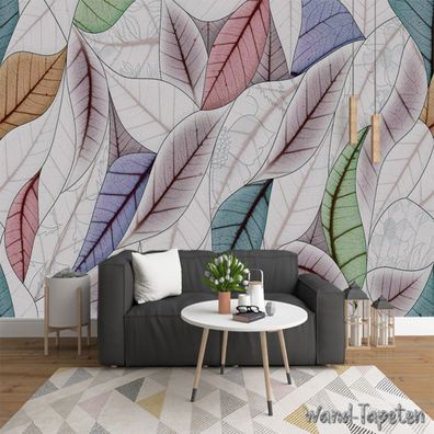 Handgemalte 3D Blätter Fototapete Modern Minimalistisch Vlies Wandbild 7236