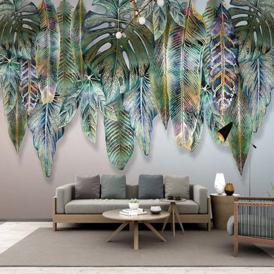 • Handgemalte Tropische Pflanzen Wandtattoo Blätter Modern Luxus Vlies 10303