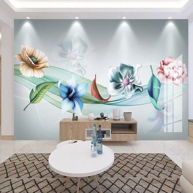 • Vlies Fototapete Wandtapete Wandbilder Handgemalte Blätter und Blumen 3807