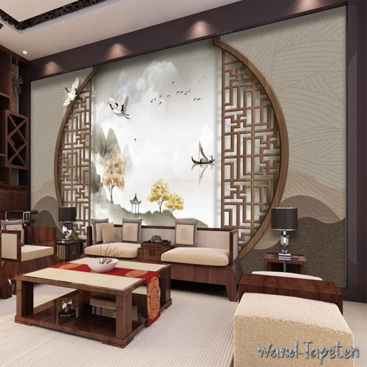 Handgemaltes - Asiatische Landschaft & Blumen Wanddekoration 7205