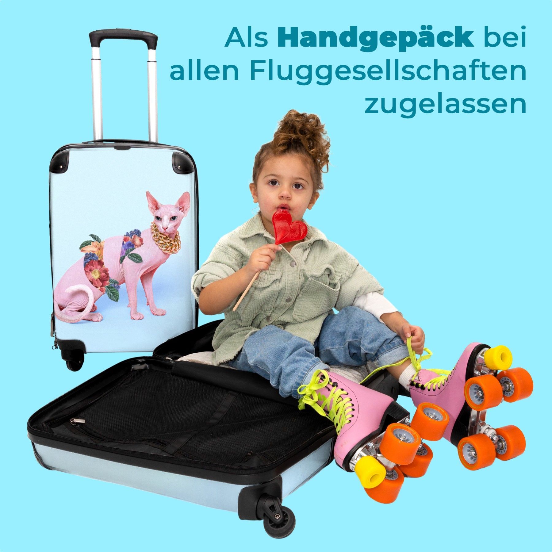 Handgepäck - Handkoffer - Rollkoffer - Kindertrolley - Mädchen - Katze