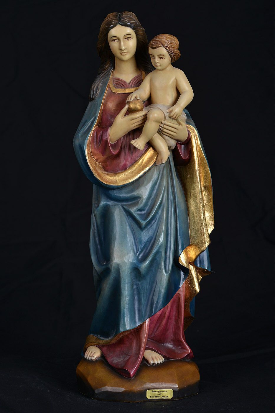 Handgeschnitzte Gottesmuter Kind - coloriertes UNIKAT mit Zertifikat, Höhe 43cm!