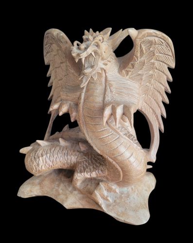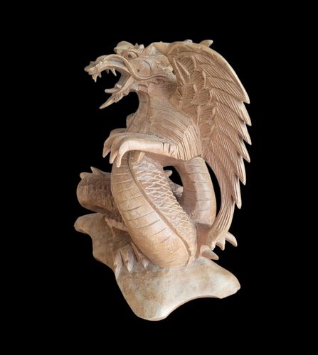 Handgeschnitzter Holzdrache - asiatische Skulptur - vmtl. Bali