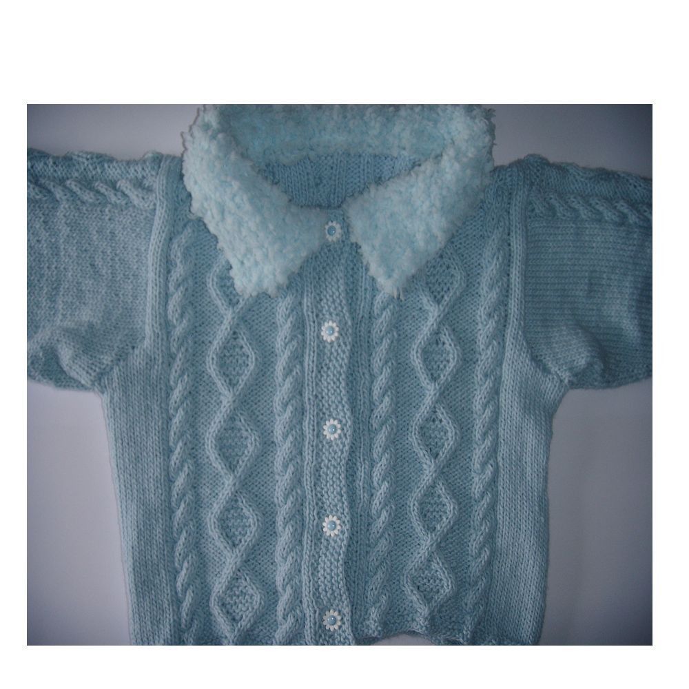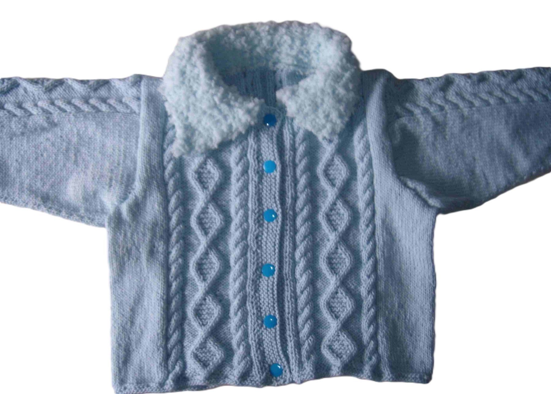 handgestrickte Baby-Jacke mit Plüschkragen