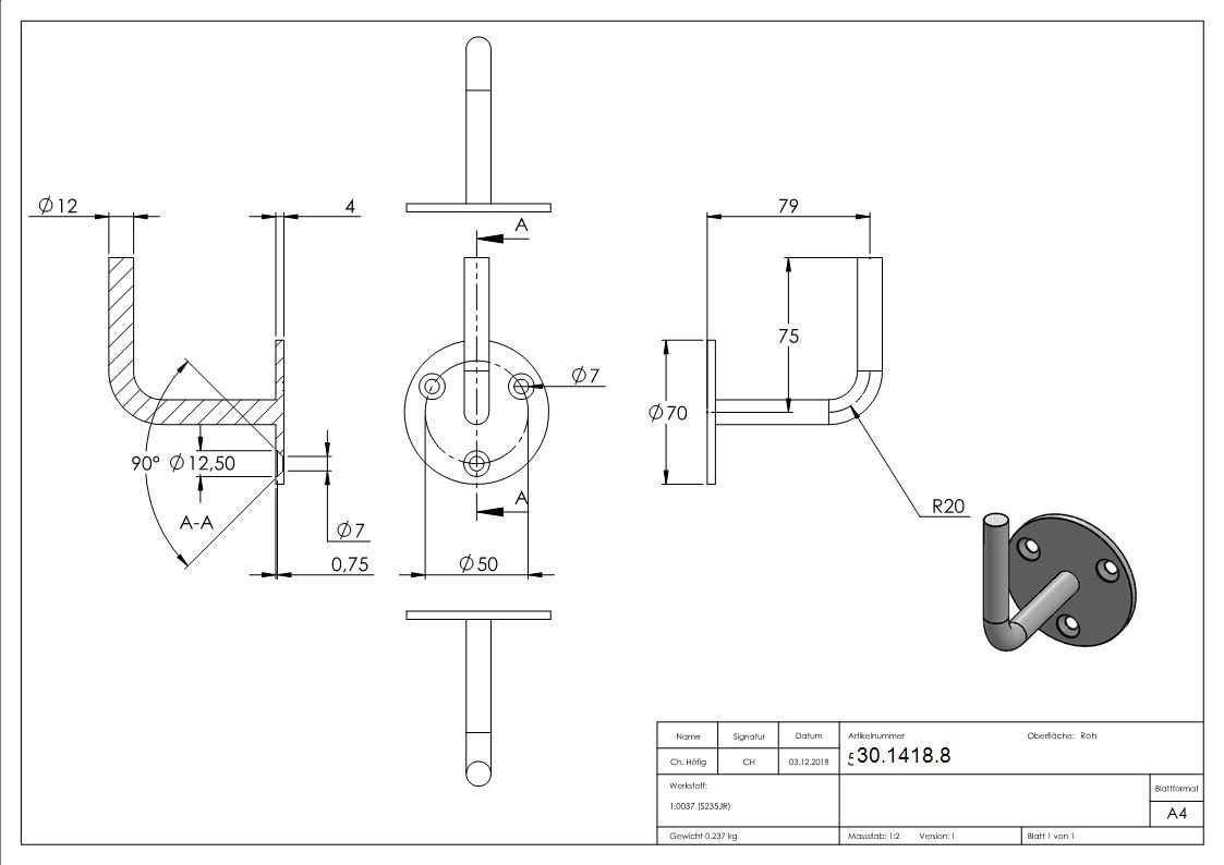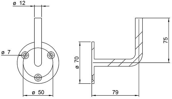 Handlaufhalter | mit Ronde 70x4 mm | zum Anschweißen | Stahl S235JR, roh