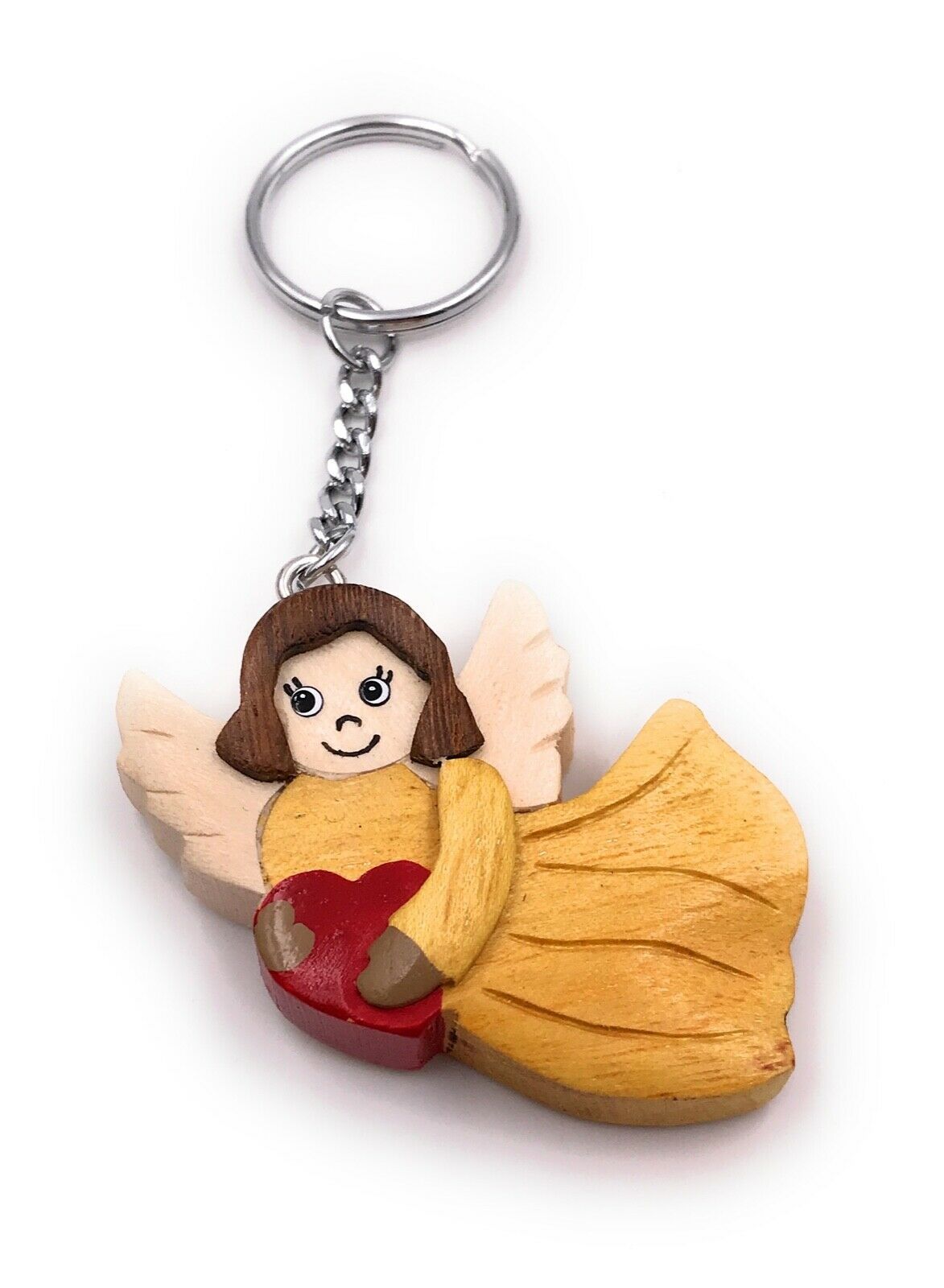 Handmade Holz Schlüsselanhänger Engel Himmelsbote mit Herz fliegend