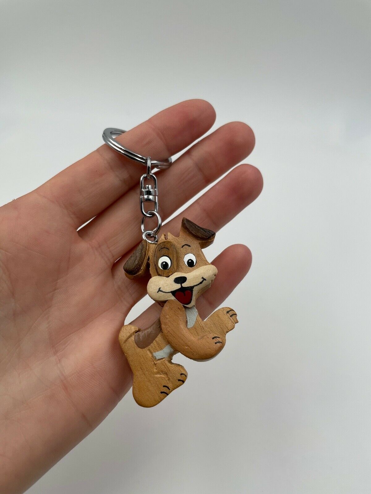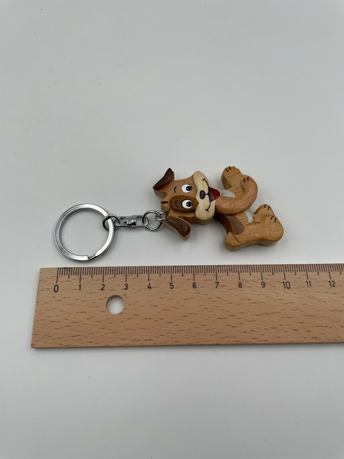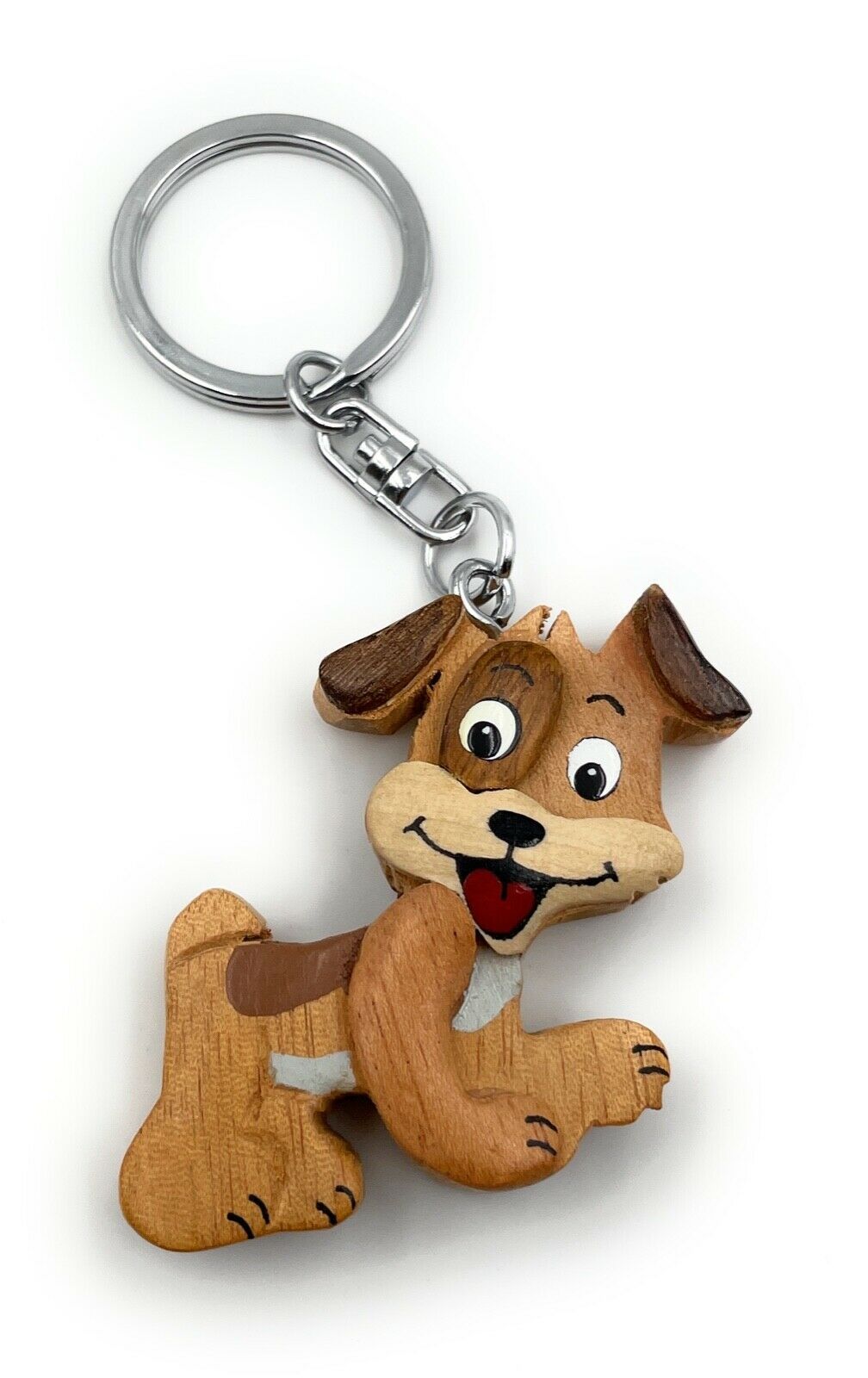 Handmade Holz Schlüsselanhänger Hund mit Zunge Haustier Vierbeiner Rüde Familie