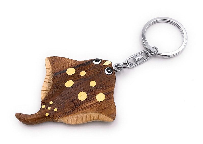 Handmade Holz Schlüsselanhänger Rochen Plattfisch gepunktet Unterwasser Fisch