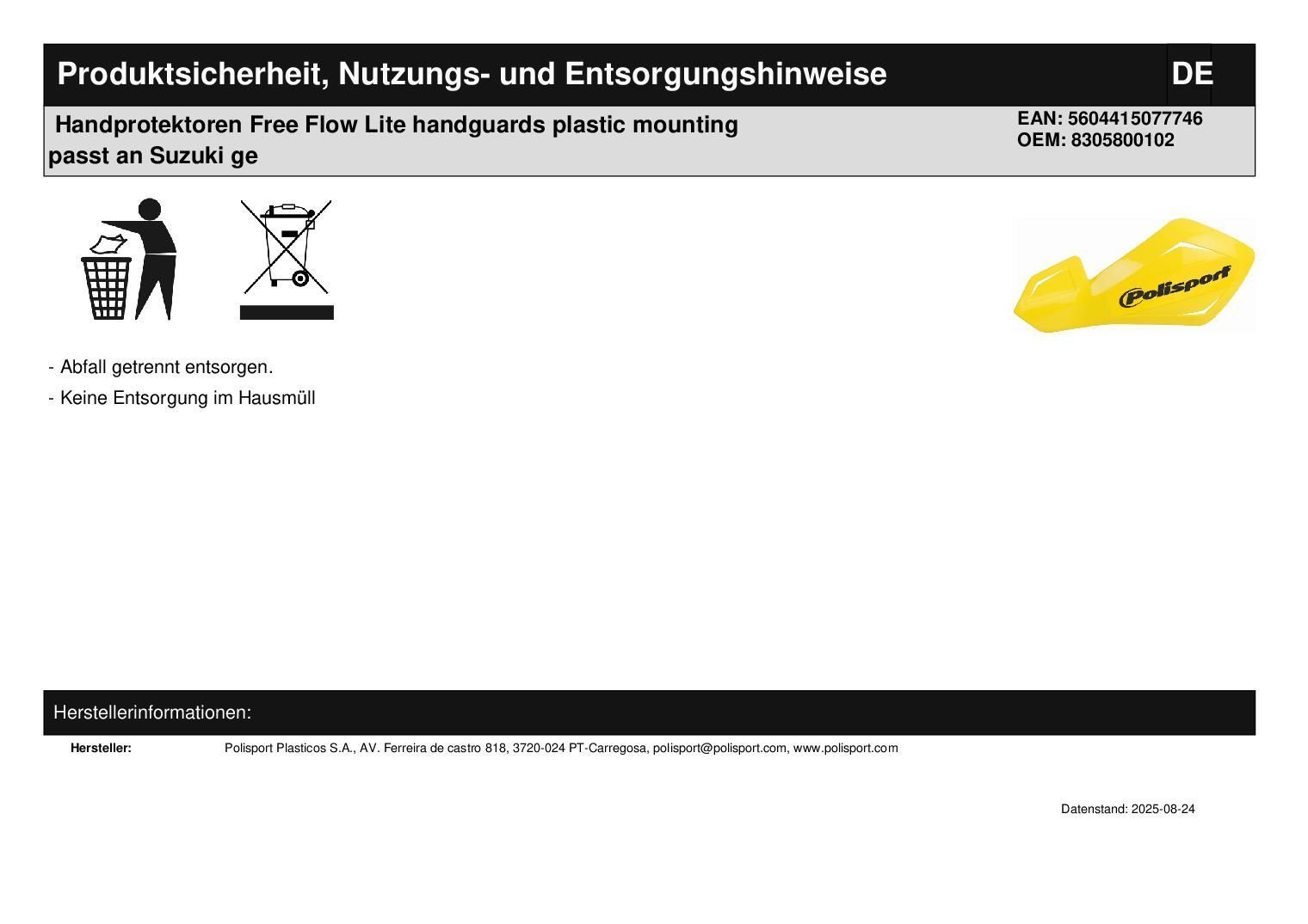 Polisport Handprotektoren Free Flow Lite handguards plastic mounting passt an Suzuki ge