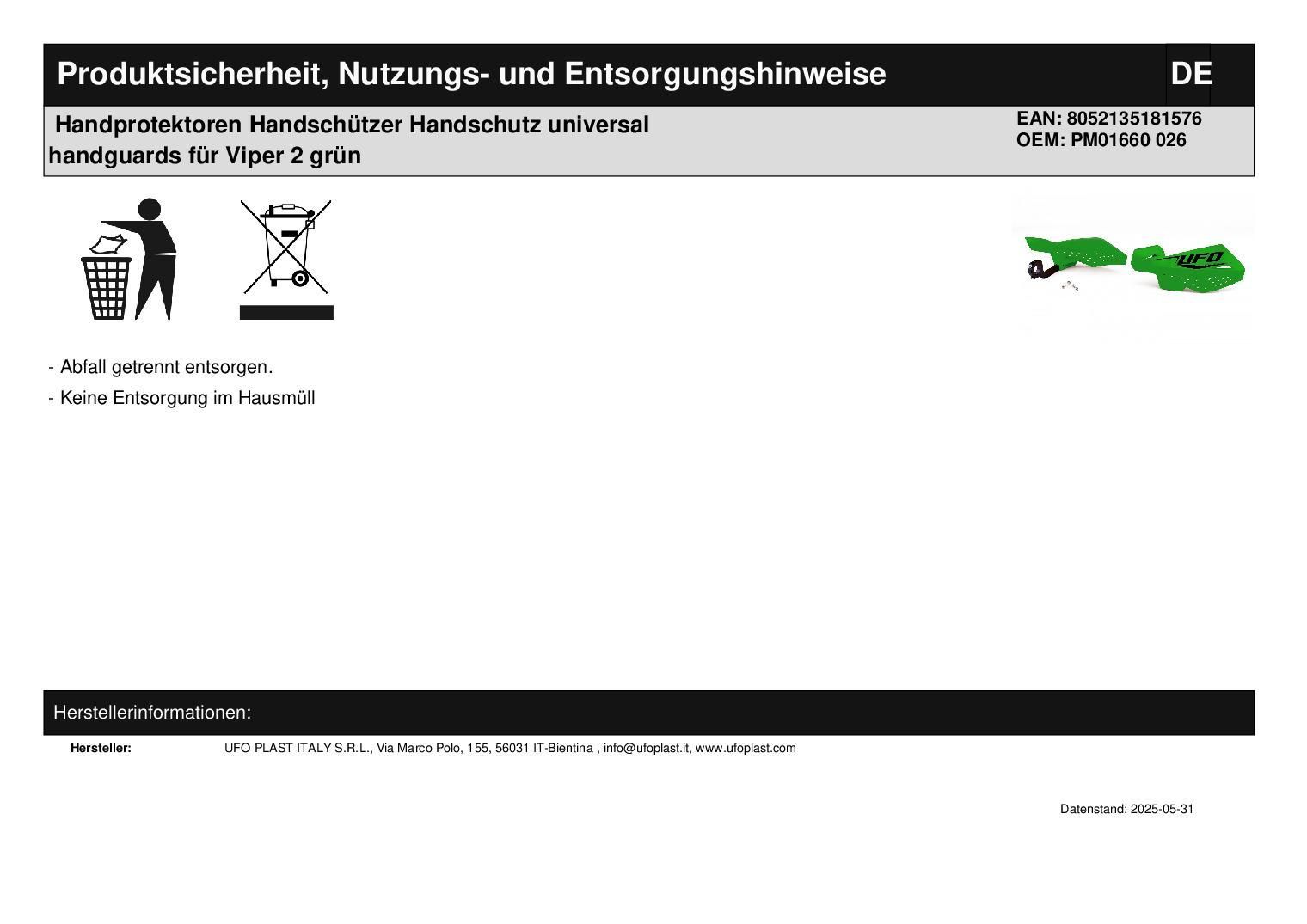 Handprotektoren Handsch?tzer Handschutz universal handguards f?r Viper 2 gr?n
