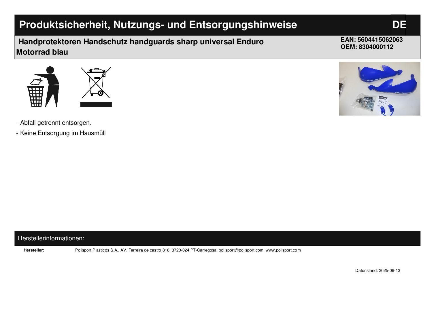 Polisport Handprotektoren Handschutz handguards sharp universal Enduro Motorrad blau
