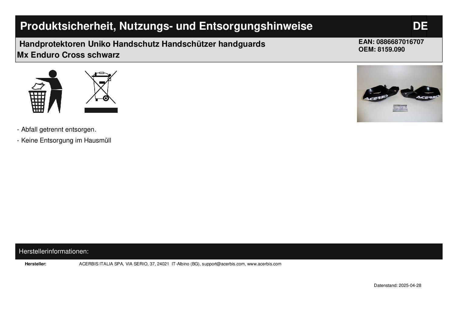 Acerbis Handprotektoren Uniko Handschutz Handschützer handguards Mx Enduro Cross schwarz