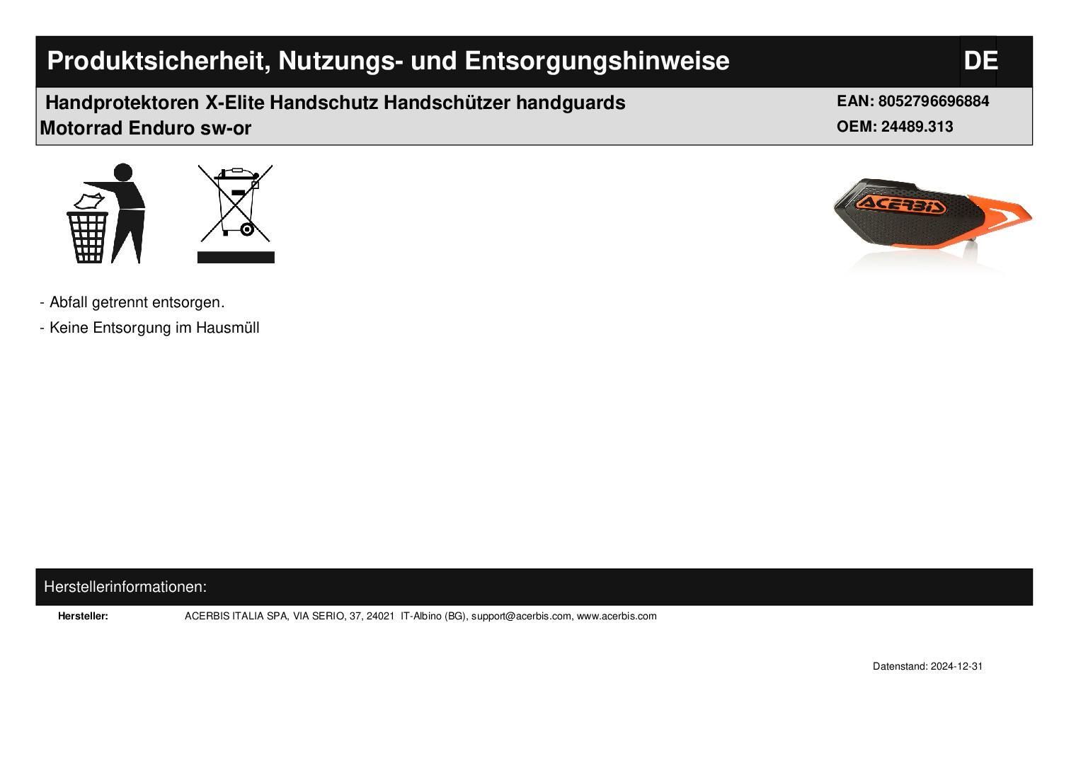 Acerbis Handprotektoren X-Elite Handschutz Handschützer handguards Motorrad Enduro sw-or