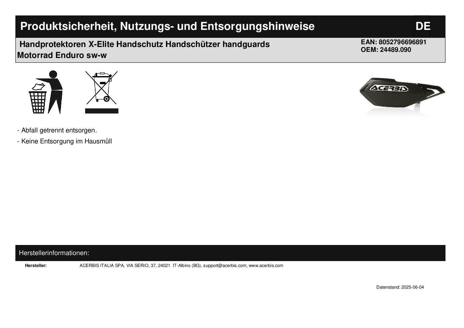 Acerbis Handprotektoren X-Elite Handschutz Handschützer handguards Motorrad Enduro sw-w