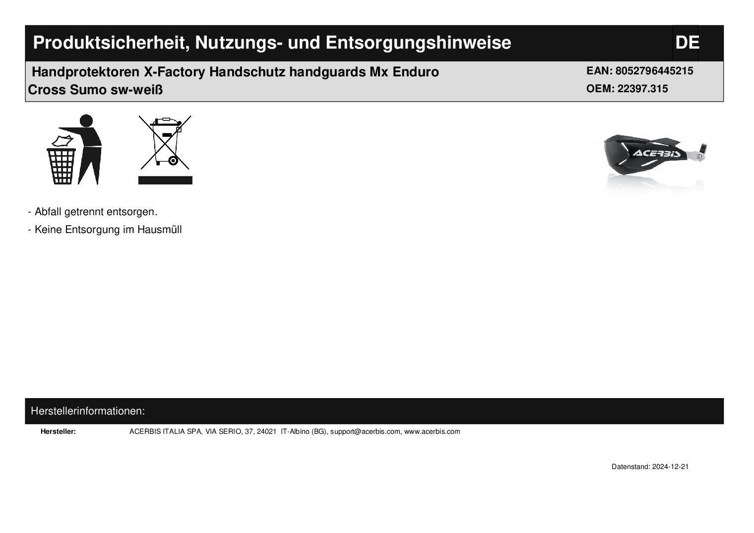 Acerbis Handprotektoren X-Factory Handschutz handguards Mx Enduro Cross Sumo sw-sw