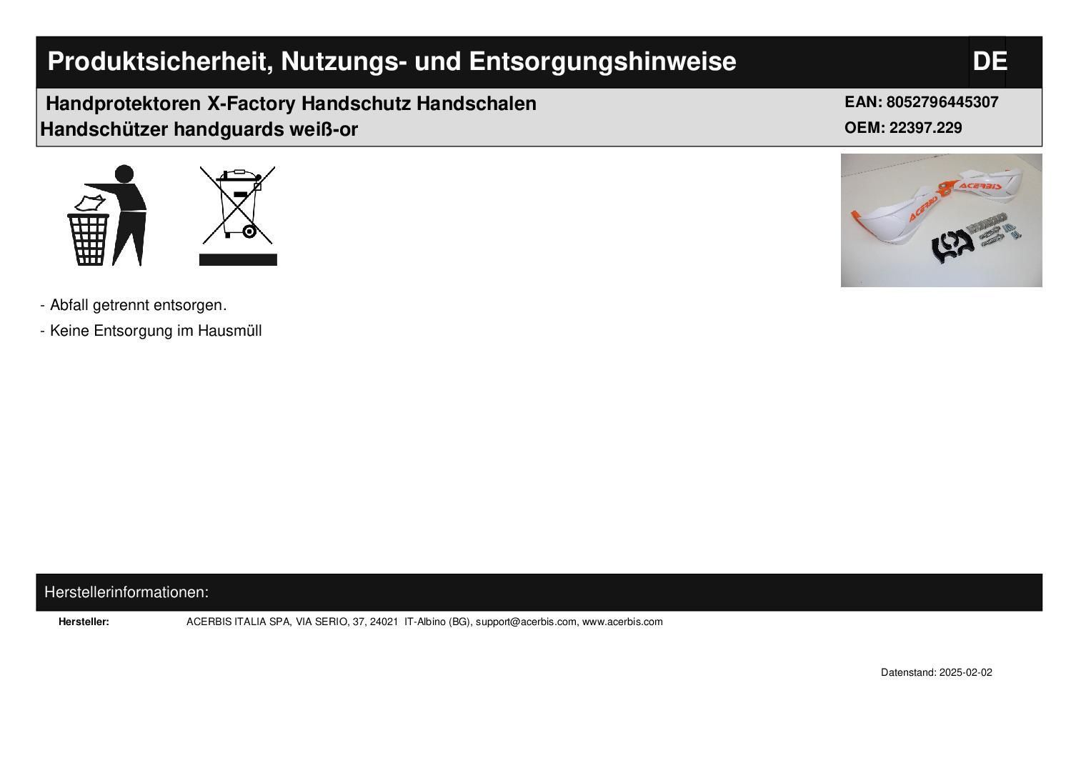 Acerbis Handprotektoren X-Factory Handschutz Handschalen Handschützer handguards weiß-or