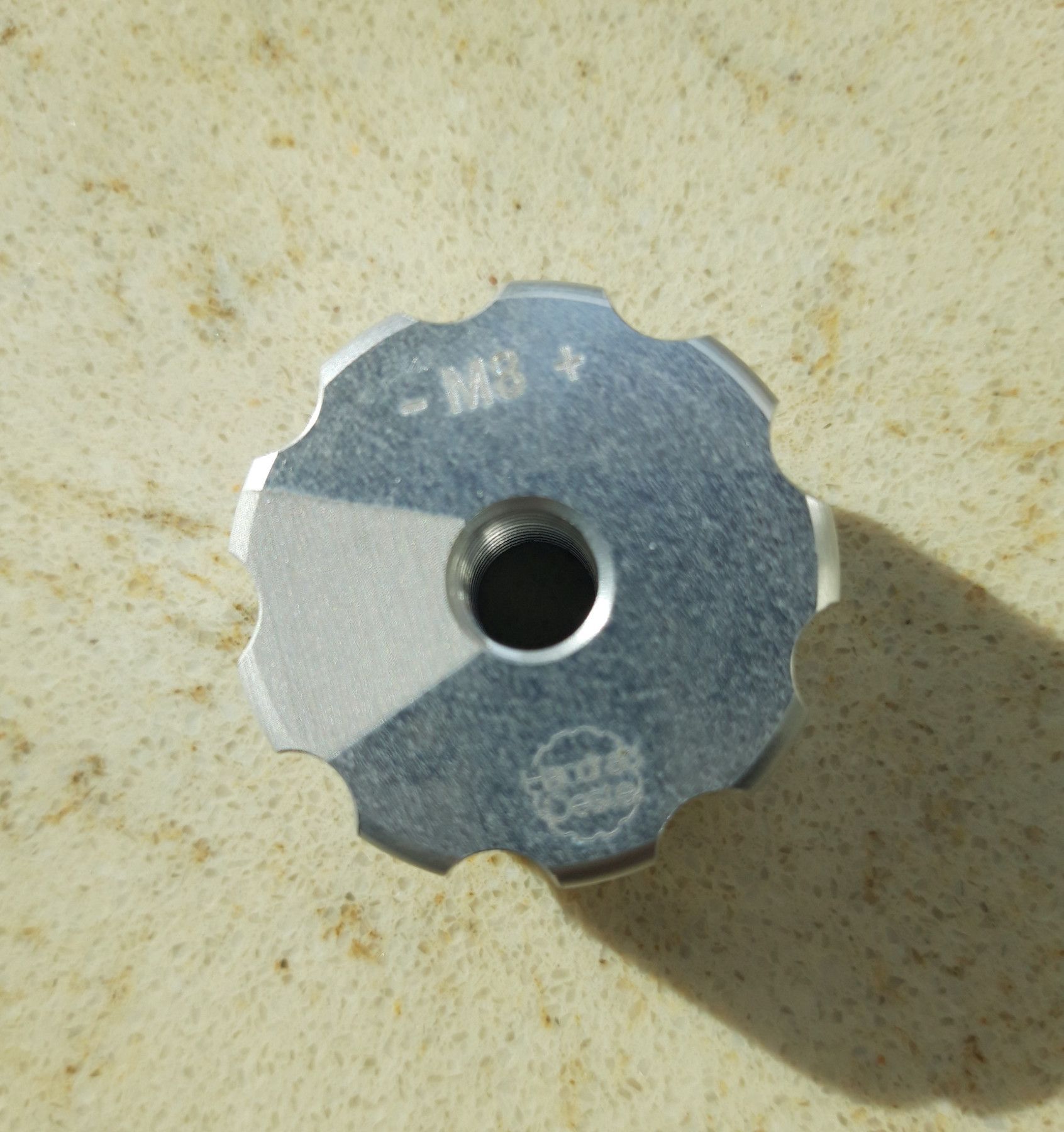 eloxiertes Aluminium Handrad M8 mit Innengewinde - Es handelt sich hierbei um die beste Alternative wenn es um werkzeugloses Verschrauben, wie bei Flügelschrauben, geht. Durch unser eigenes Design ist es jederzeit möglich die eingebaute Schraube (nach DIN) zu tauschen oder zu ersetzen, dadurch wird
