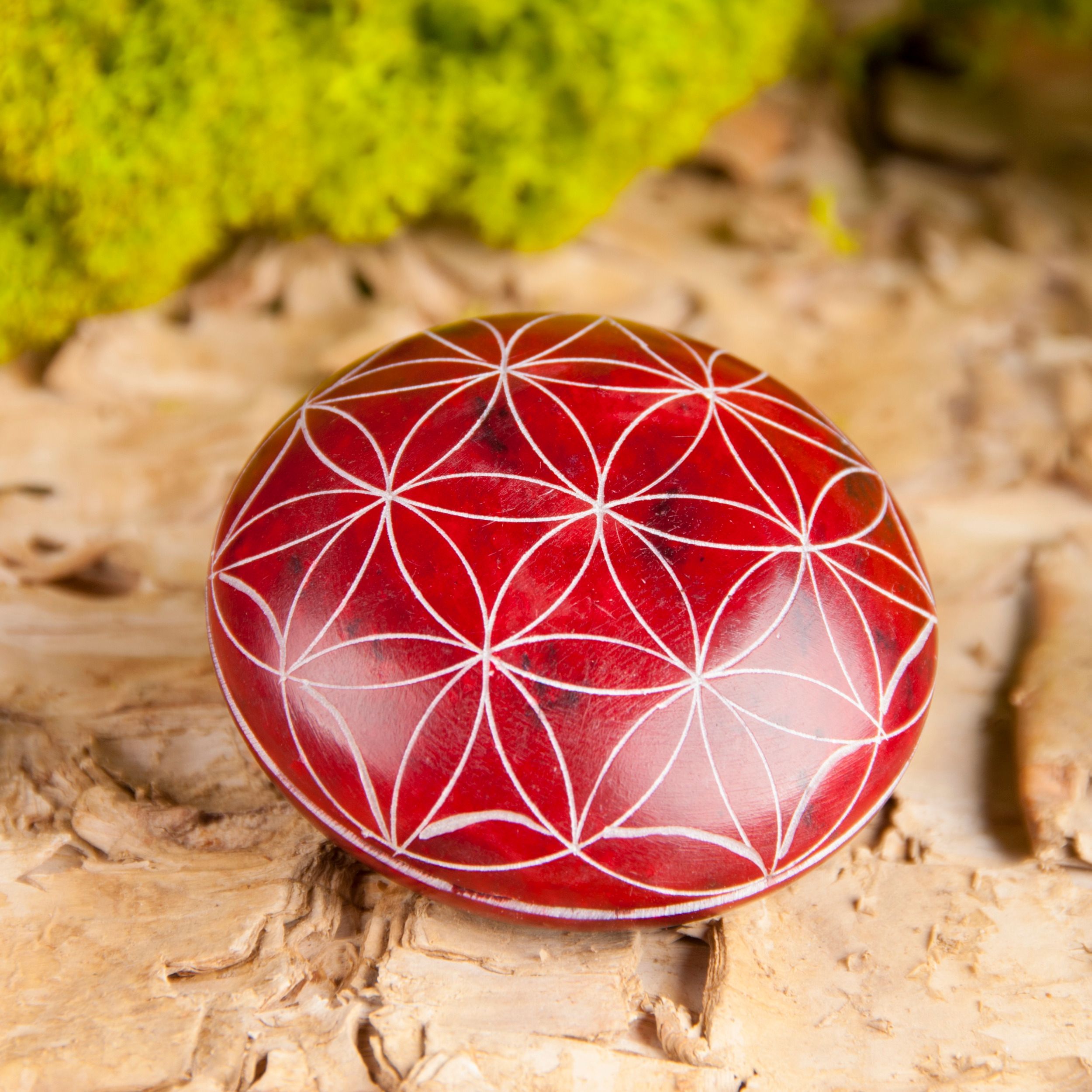 Handschmeichler Lebensblume Speckstein rot 4,5 cm Handgraviert Energiestein
