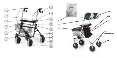 Russka Ersatzteile für Rollator Standard / Russka Zubehör für Rollator Standard