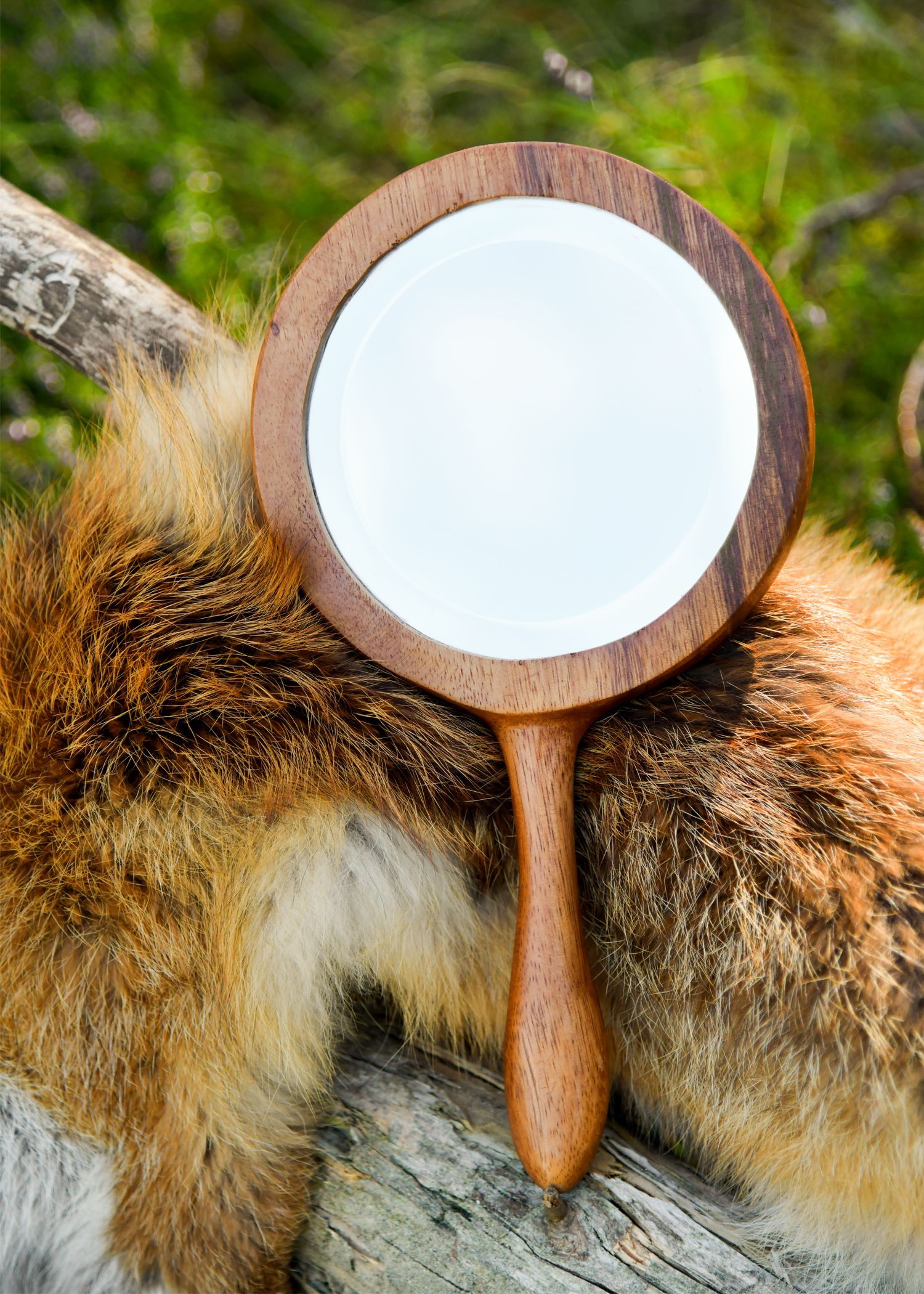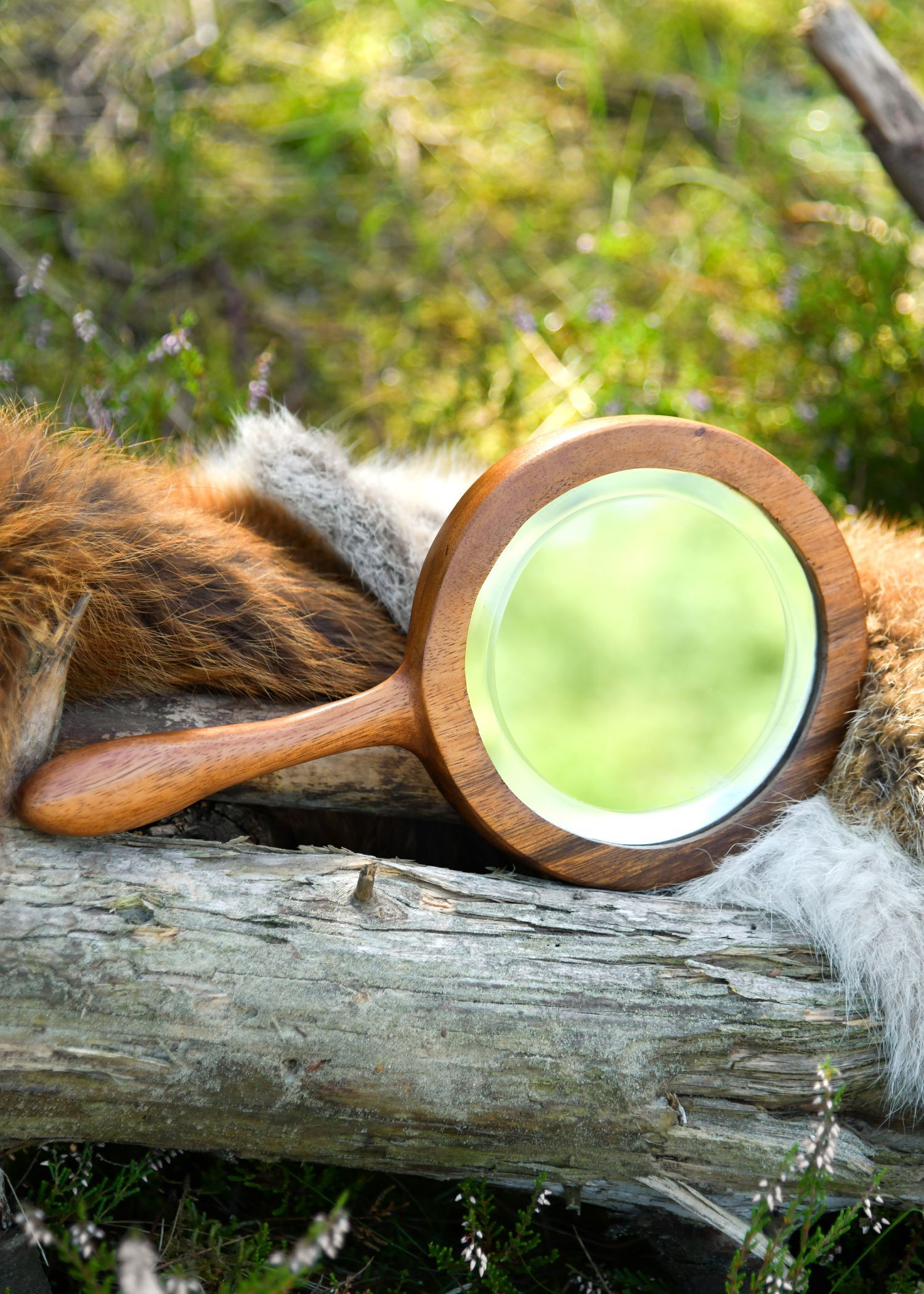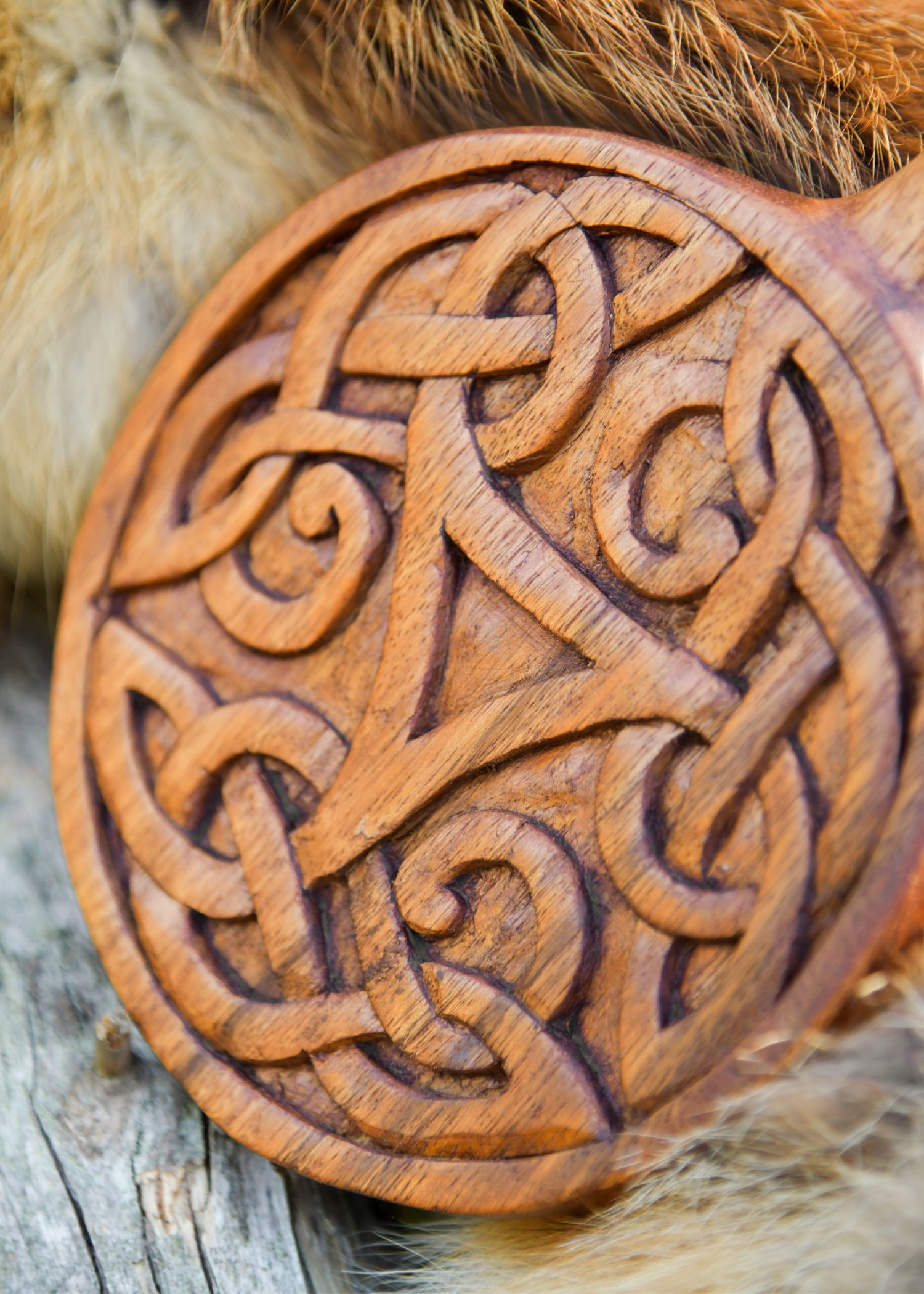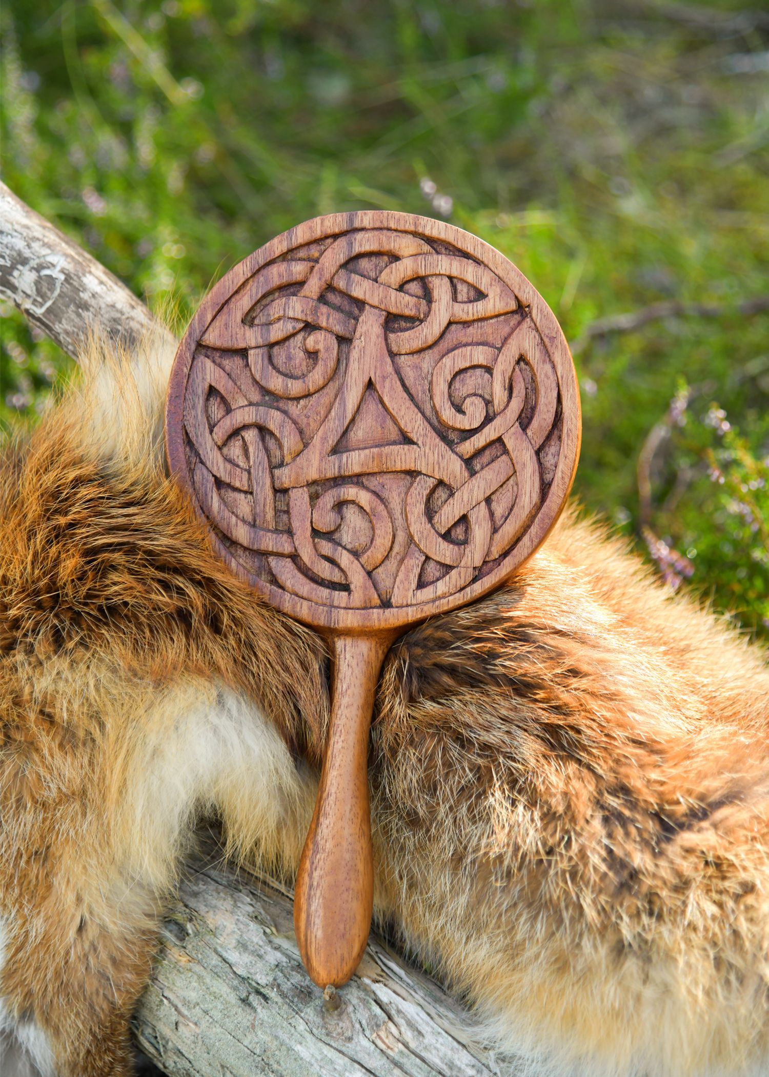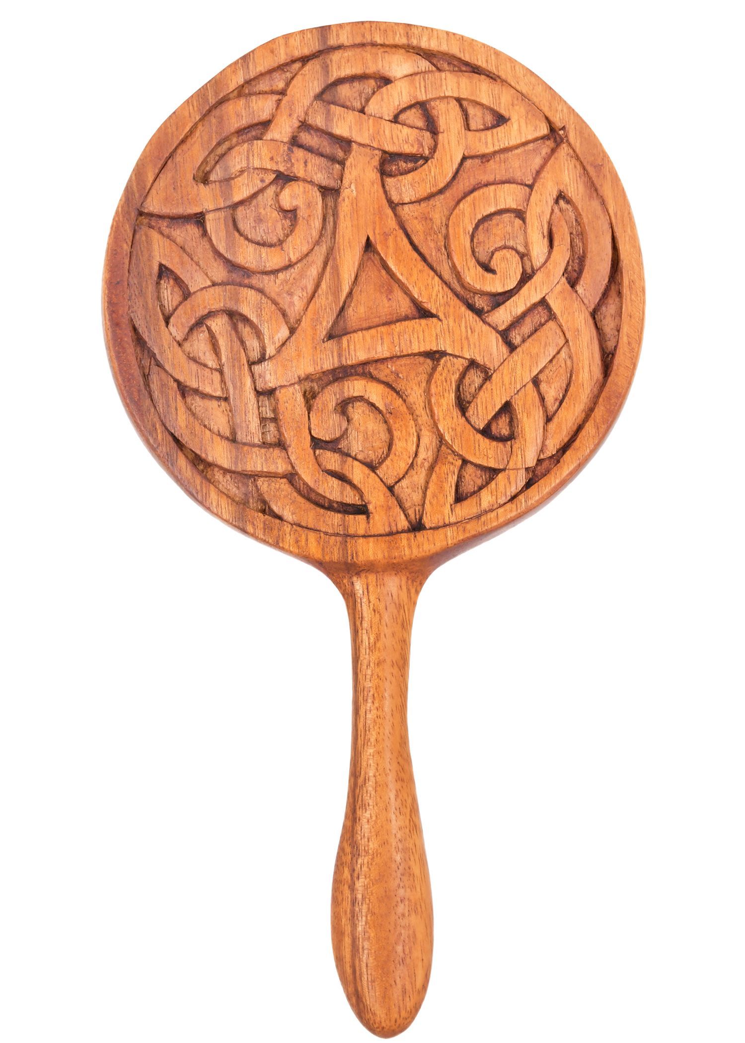 Handspiegel aus Holz mit Triskele und keltischen Knoten, ca. 28 cm