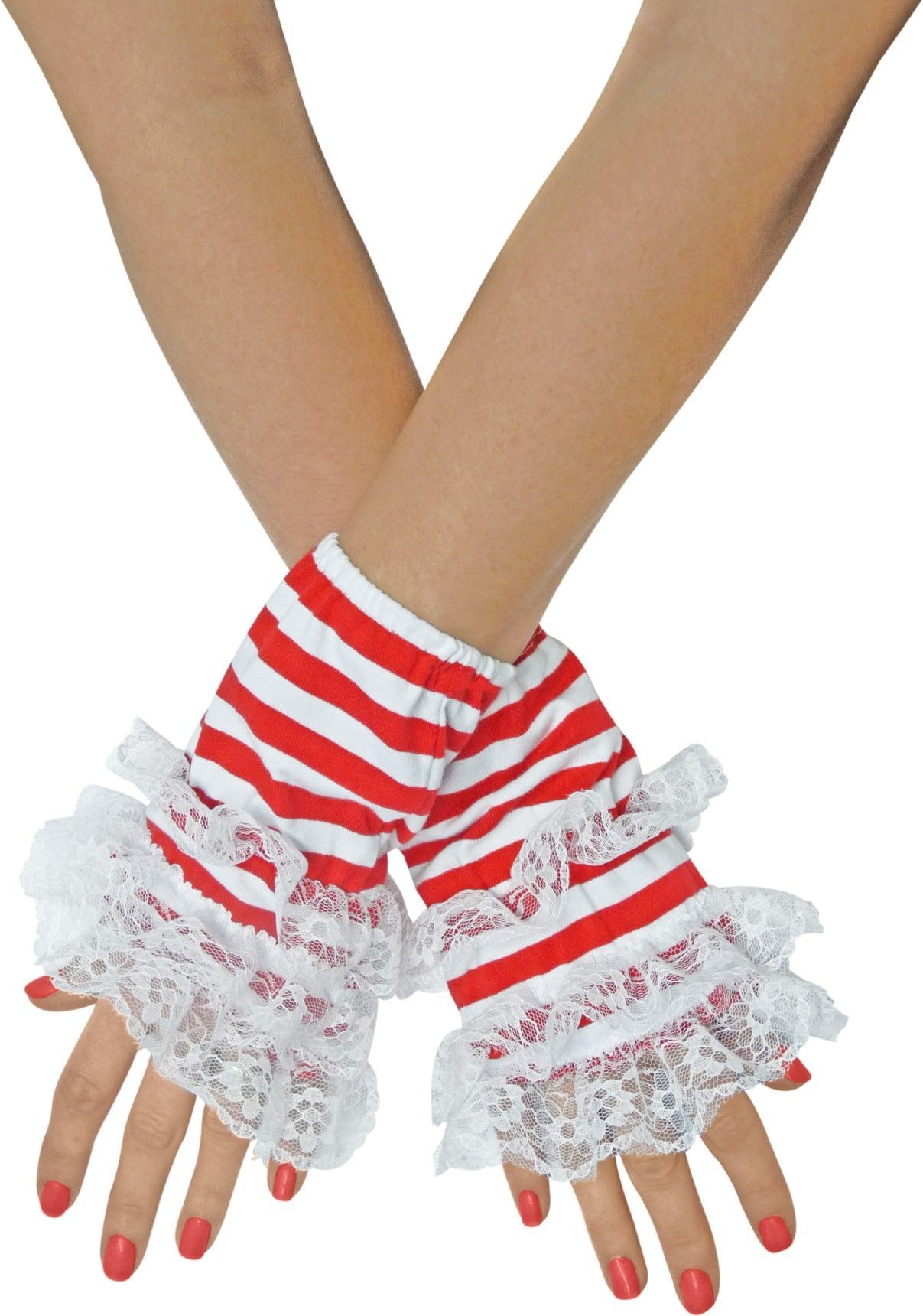 Handstulpen Ringel rot/weiß Manschetten Köln Armstulpen Karneval Fasching