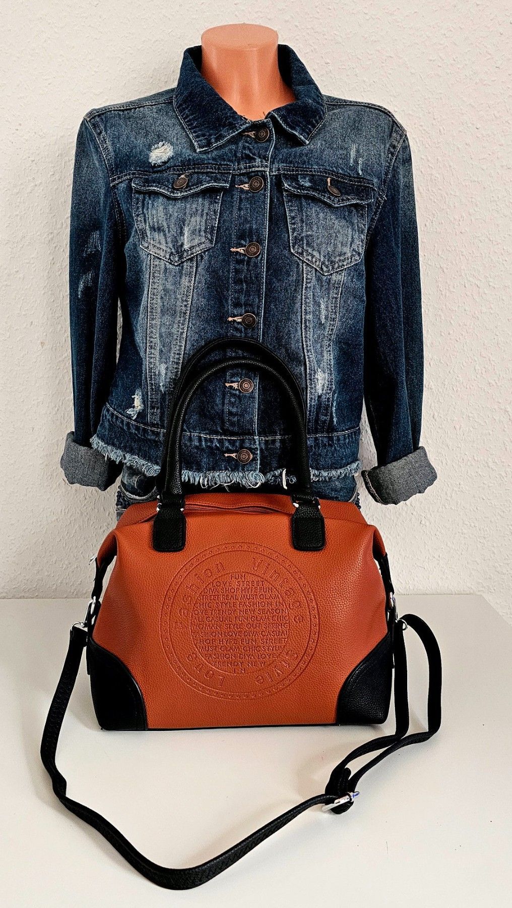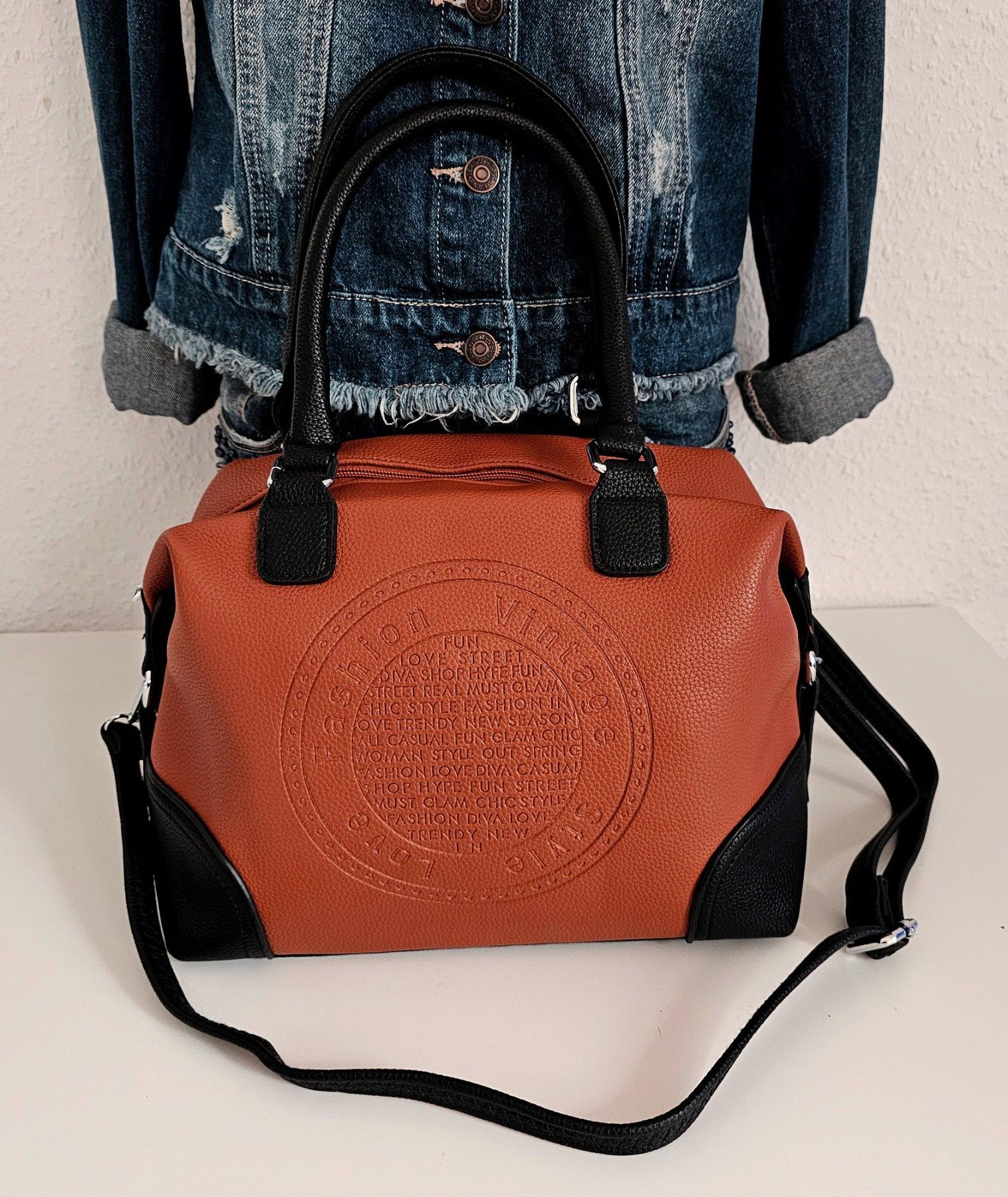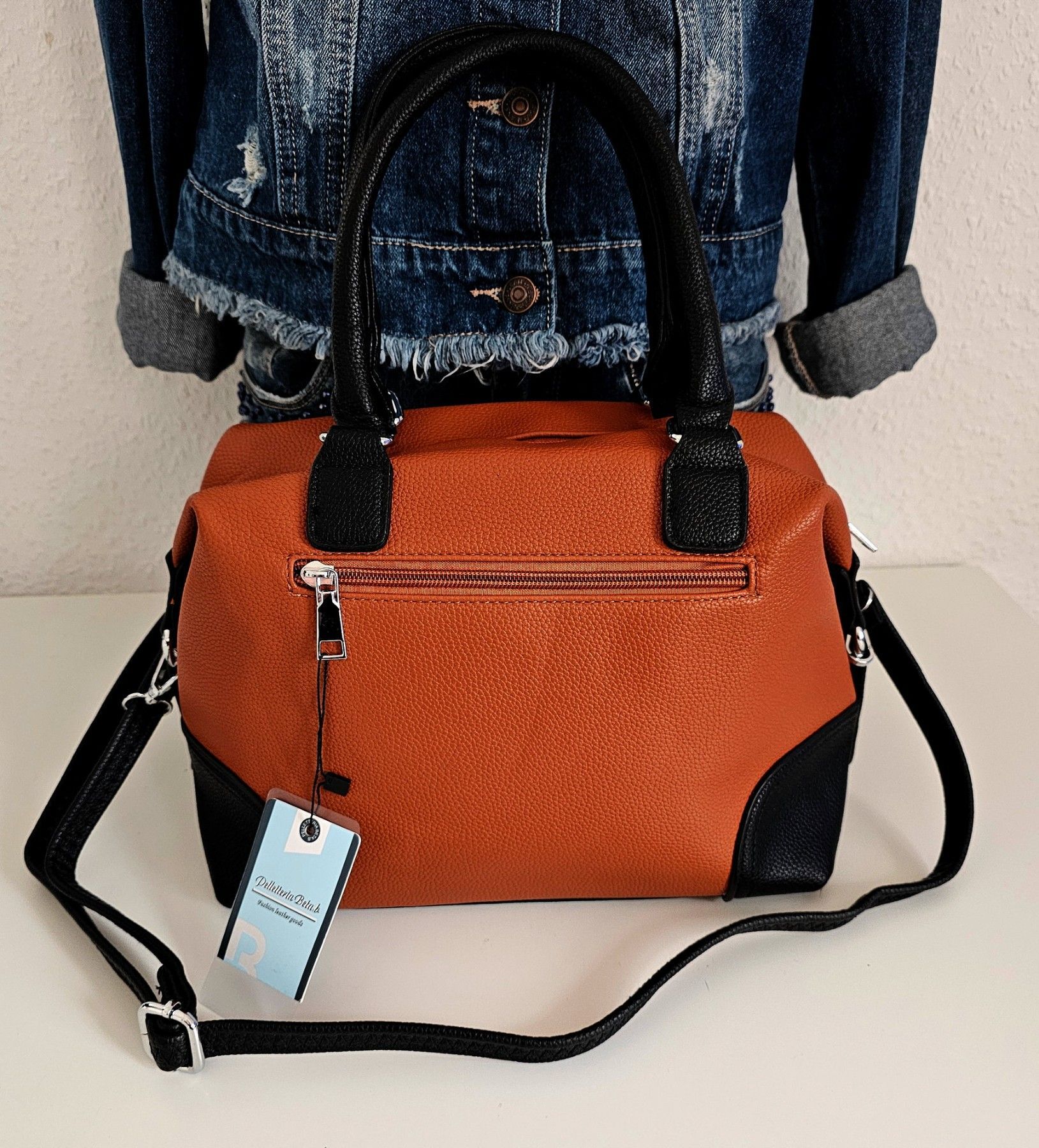 Handtasche Henkeltasche Schultertasche Cross Body zweifarbig Cognac/Schwarz