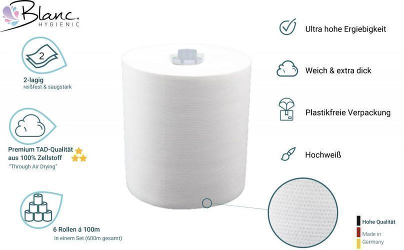 Handtuchrollen "Premium TAD" 6 Rollen je SET, 2-lagig, 100m je Rolle, 100% TAD-Qualit