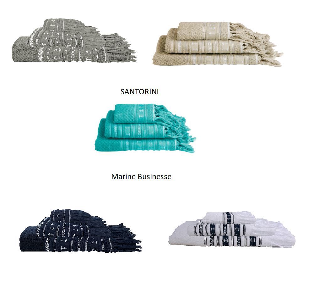Handtuchset Marine Business SANTORINI Einfach super sind die Marine Business Handtuchsets zum Sonnenbaden auf Ihrer Yacht, am Strand oder in der unberührten Natur. Die Marine Business Santorini Kollektion überzeugt durch ein festes maritimes Erscheinungsbild. Sie fühlen sich sehr weich an, zeichnen