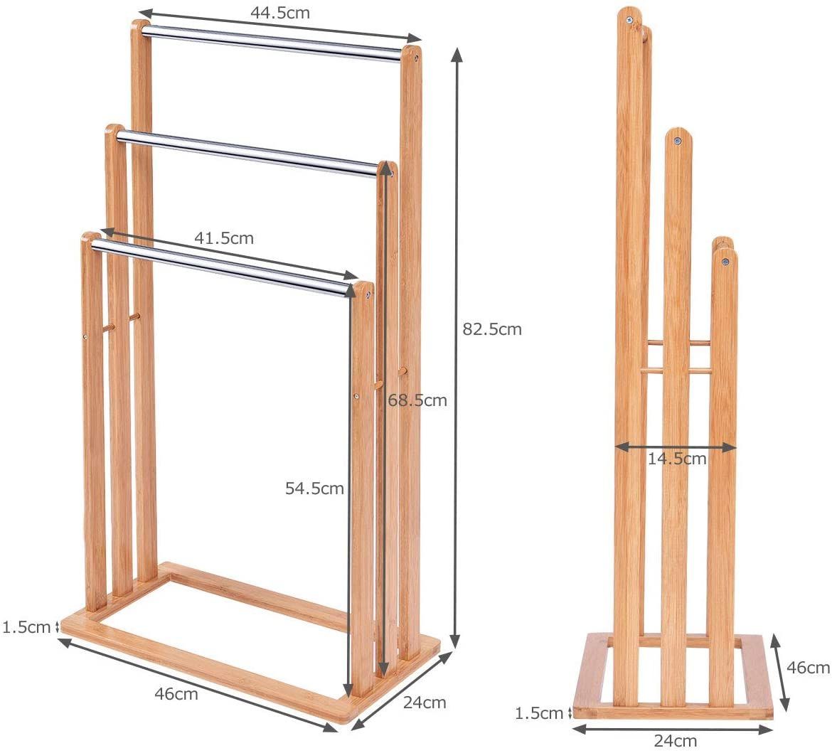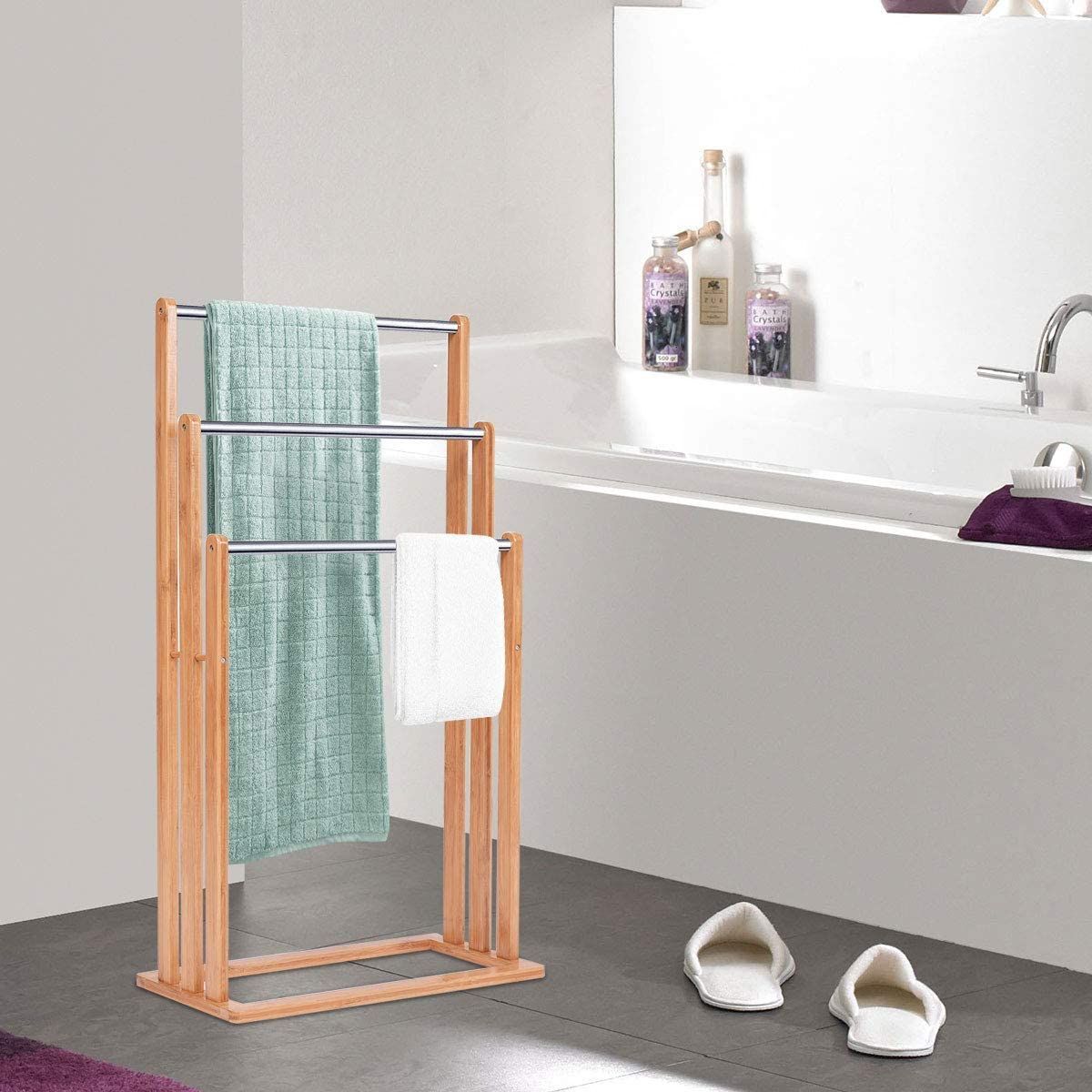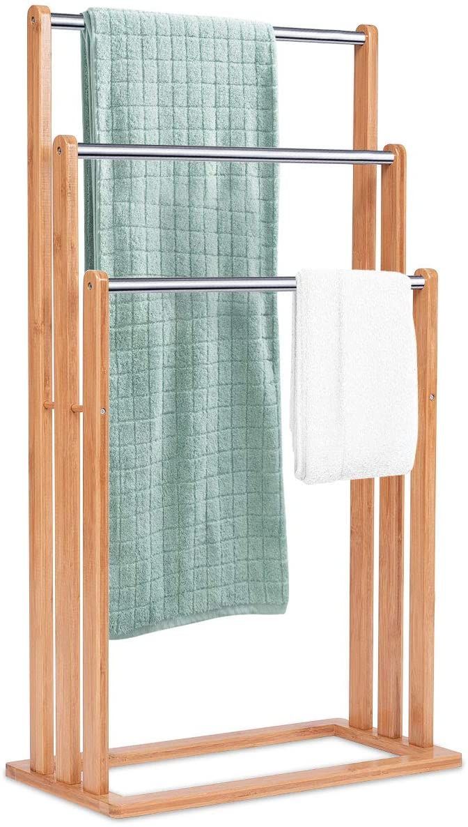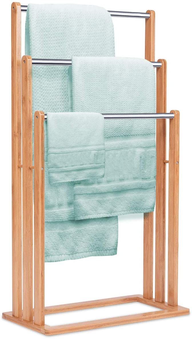 eluno Stand-Handtuchhalter freistehend, 3 Stangen, Handtuchständer, Bambus